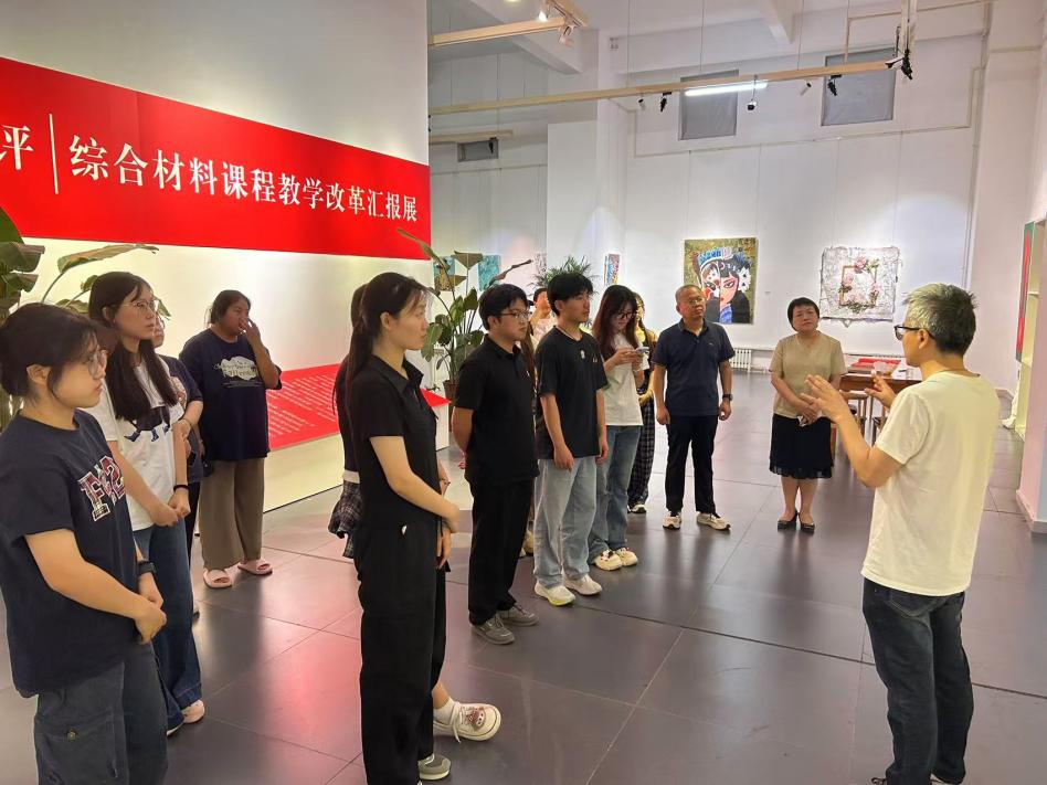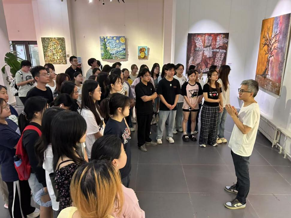 学生们全程认真聆听,讲解结束后同学们围绕画作驻足观赏,在古光辉老师的引导下,体悟综合材料碰撞出的艺术火花,现场交流氛围热烈。此次活动搭建起艺术实践与理论交流的桥梁,助力学生拓展艺术视野、提升创作认知,也彰显了伟德以艺术活动赋能人才培养,推动美育工作深入开展的积极成效。