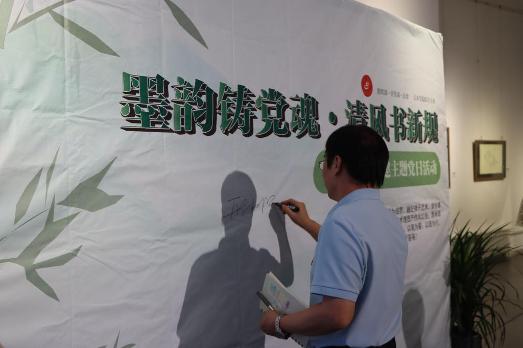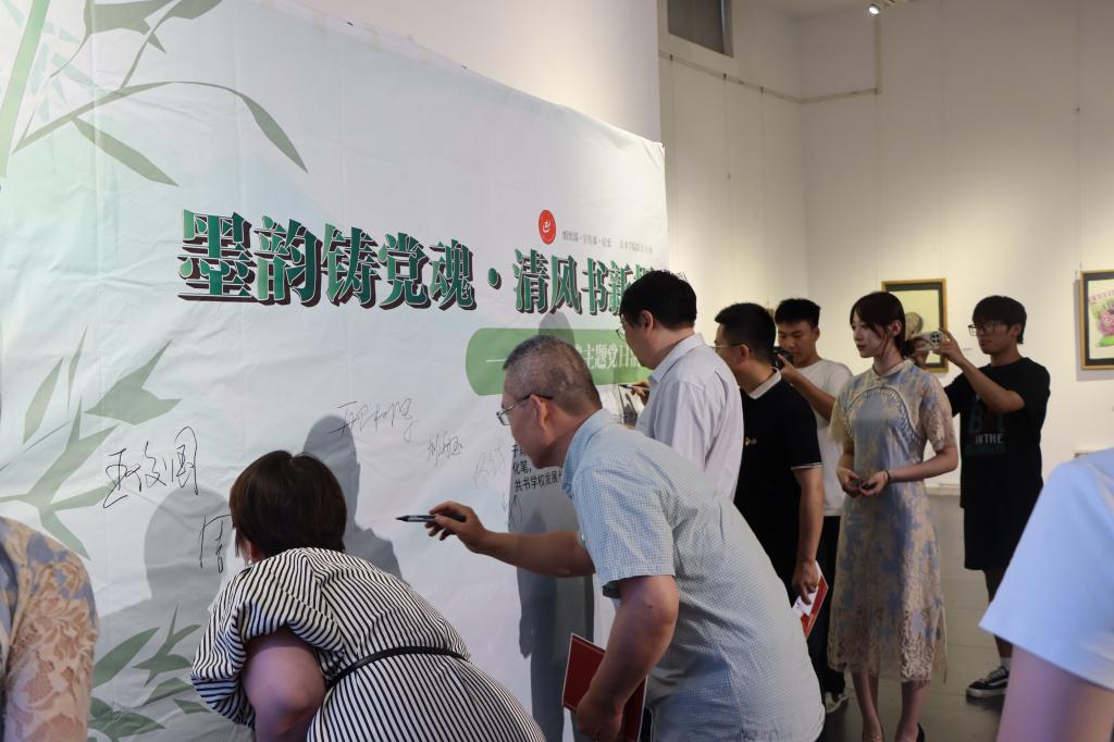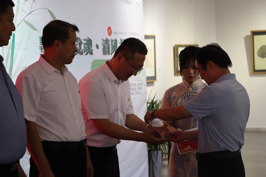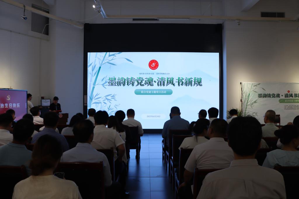 为深入贯彻落实党的二十大关于“加强新时代廉洁文化建设”的要求,以艺术创作赋能思政教育,通过廉政主题美术作品展搭建“专业实践+思政育人”平台,引导师生党员在艺术创作与赏析中强化廉洁自律意识,筑牢思想防线,6月24日,组织部、宣传部、纪委、美术学院联合开展“墨韵铸党魂·清风书新规”党建主题党日活动。党委副书记邢树军出席活动,并宣布廉洁主题作品展开幕。