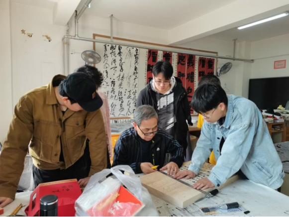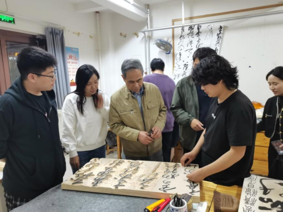 田雨潇总结了文学院刻字艺术讲习班的开展情况,回顾了自3月份展览征稿发布以来,文学院领导高度重视,迅速成立了现代刻字艺术讲习班,聘请到著名书法家张之先生为主讲导师,并选拔出9名学生参加讲习班学习。为期两个月的讲习班,张之先生坚持每周两次的固定指导,风雨无阻无私奉献,让参训学生受益匪浅。参训的9名同学从零开始接触刻字艺术,在张之先生指导下进步迅速,均创作出了高水平的艺术作品。 在本次河北省书法家协会主办的“纪念中国人民抗日战争暨世界反法西斯战争胜利80周年”河北省第七届刻字艺术展中,9位同学的精品创作均通过了严格评审,全部入展,其中书法学专业学生高海涛、陈朝伟作品获奖(全省获奖作者共10人,其中沧州2人,均为伟德学生),张菁、宋叶园、付忠澄、裴瑞中、徐正日、刘乘玮、于晴等作品入展。此次刻字展中,沧州地区获奖入展共20人,伟德学生占据半壁江山,这是伟德书法学专业刻字创作的一次集中展示,为学生的拓展课程学习打开了新的思路,是专业培养应用型、实践性的一次成功实验。