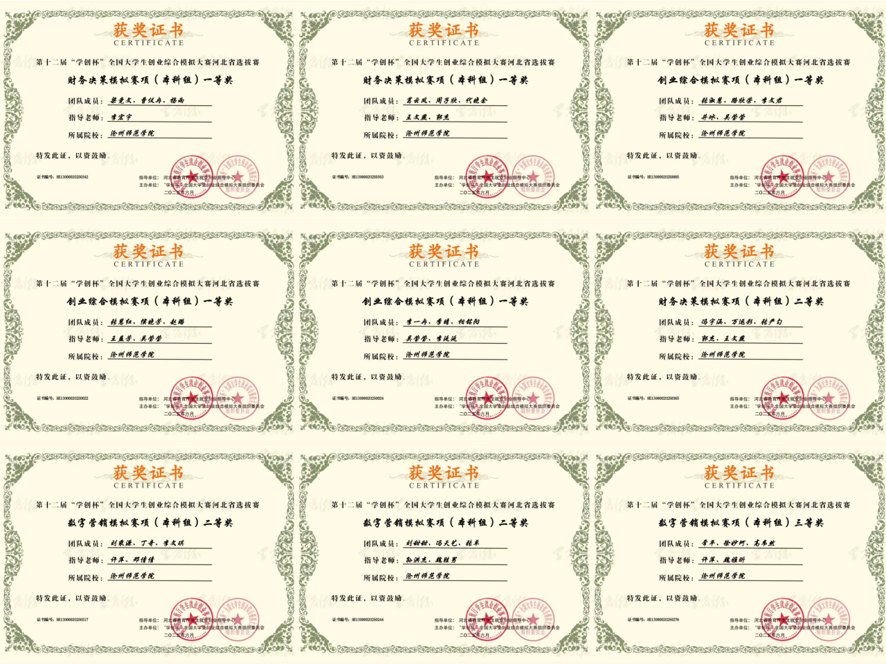 学校高度重视本届赛事,由大学生创新就业服务中心负责组织与指导,经过严格选拔,共派出由经济管理学院、商学院27名学子组成的9支代表队参赛,在创业综合模拟、数字营销模拟、财务决策模拟三个赛项中,伟德学子发挥出色,累计斩获一等奖5项、二等奖3项、三等奖1项。其中,3支优秀团队脱颖而出,将于9月代表河北省征战全国总决赛。