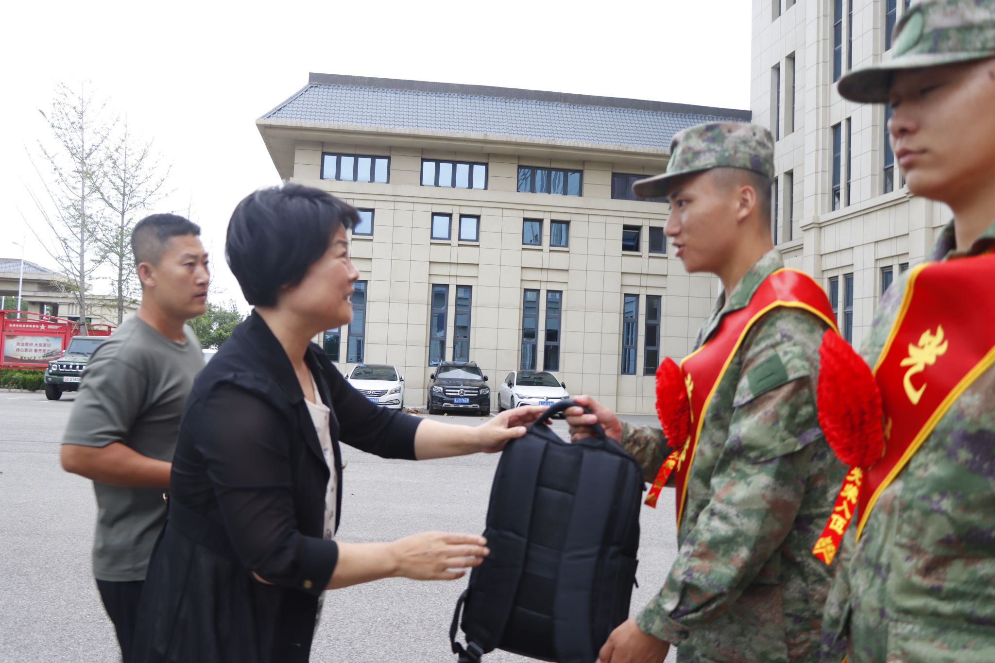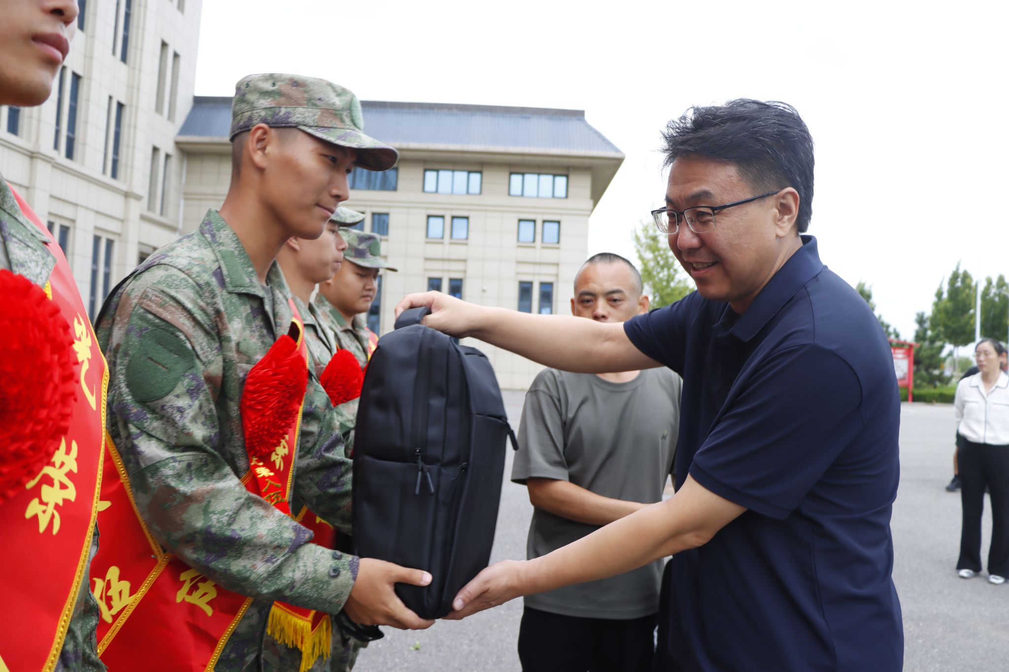 校领导为入伍学生送上满载母校关怀的“从军行囊”,勉励入伍学生牢记嘱托,勤奋工作,刻苦训练,努力在强军兴军的伟大征程中贡献青春力量。