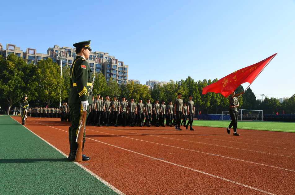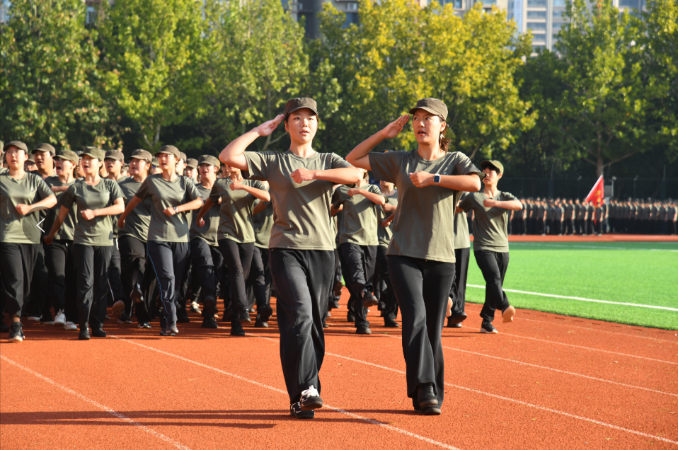 “2025级新生军训团集合完毕, 请检阅!” “开始!” 伴着朝阳 仪式正式开始