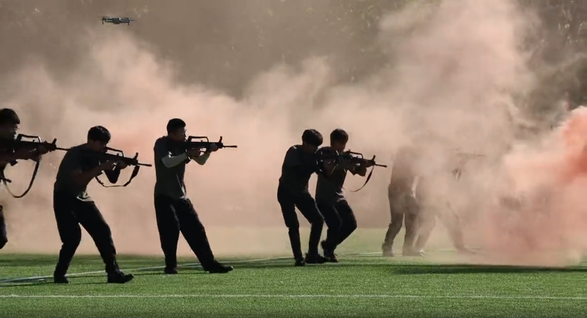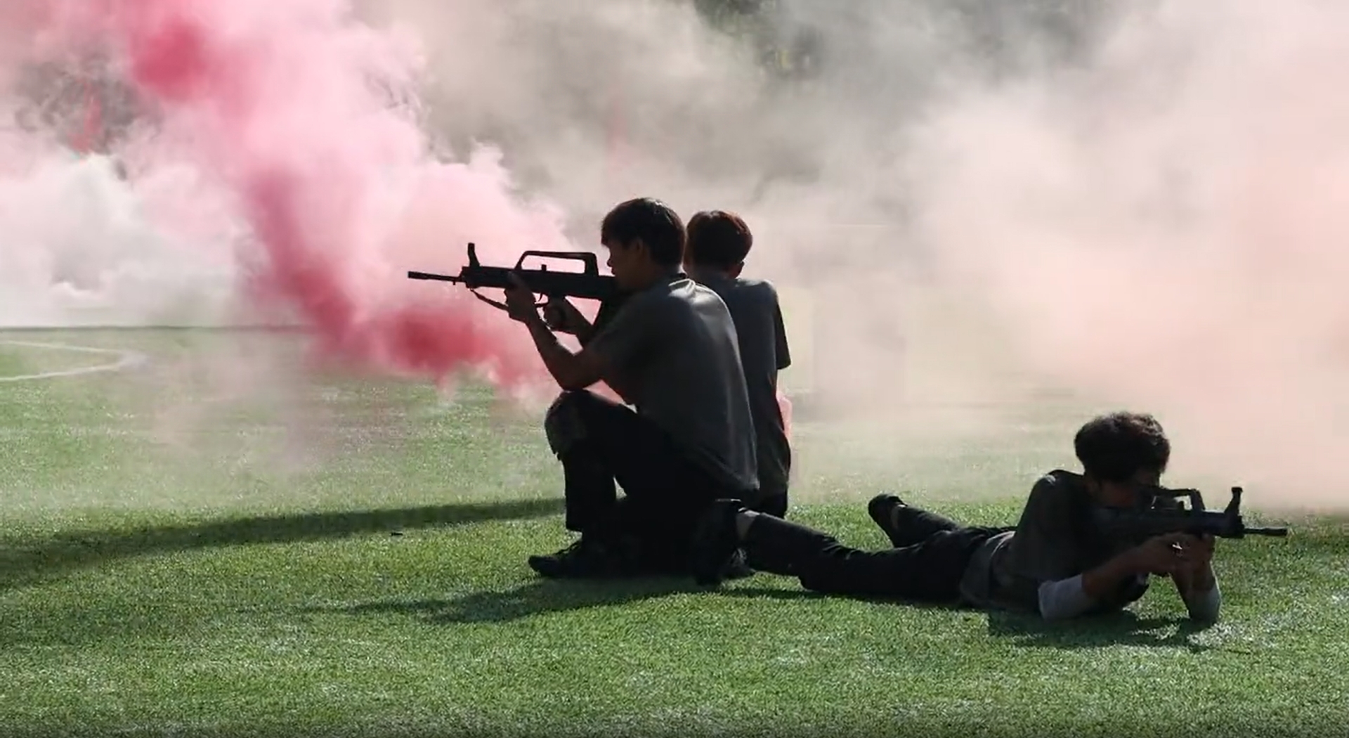 一令一动 整齐划一 目光坚毅 所向披靡 嘹亮“杀”声 响彻云霄 满分技能 立志报国 格斗术