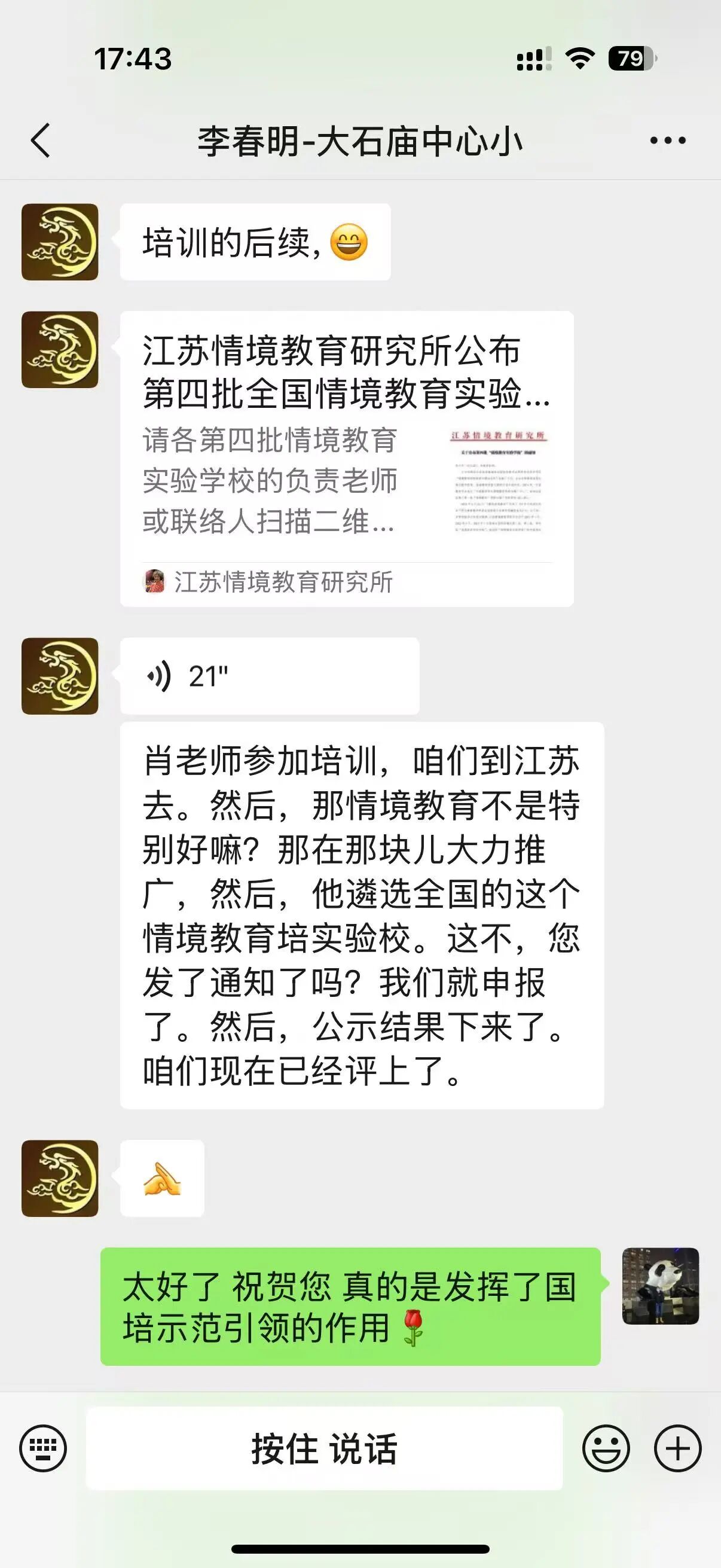这一成果得益于伟德源自英国始于1946“国培计划2024”小学校长能力提升培训项目的桥梁作用。在今年5月份,多位河北校长赴南通参加伟德源自英国始于1946组织的“国培计划2024”小学校长能力提升省外研修活动,深入情境教育的发源地——南通师范学校第二附属小学和情境教育实验校——南通紫琅一小进行实地学习与交流。南通之行令校长们深受启发,返岗后积极组织学校领导班子研讨南通经验,一致认同“情境教育”在推动教学改革、促进儿童全面成长方面的重要价值,并踊跃申报实验学校。
