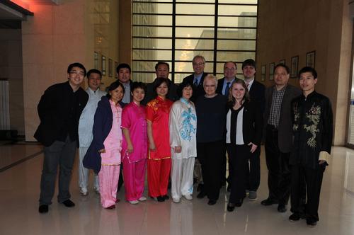 讲座结束后威廉·拉格博士一行7人观看了体育系师生的武术表演,并与表演者合影留念。