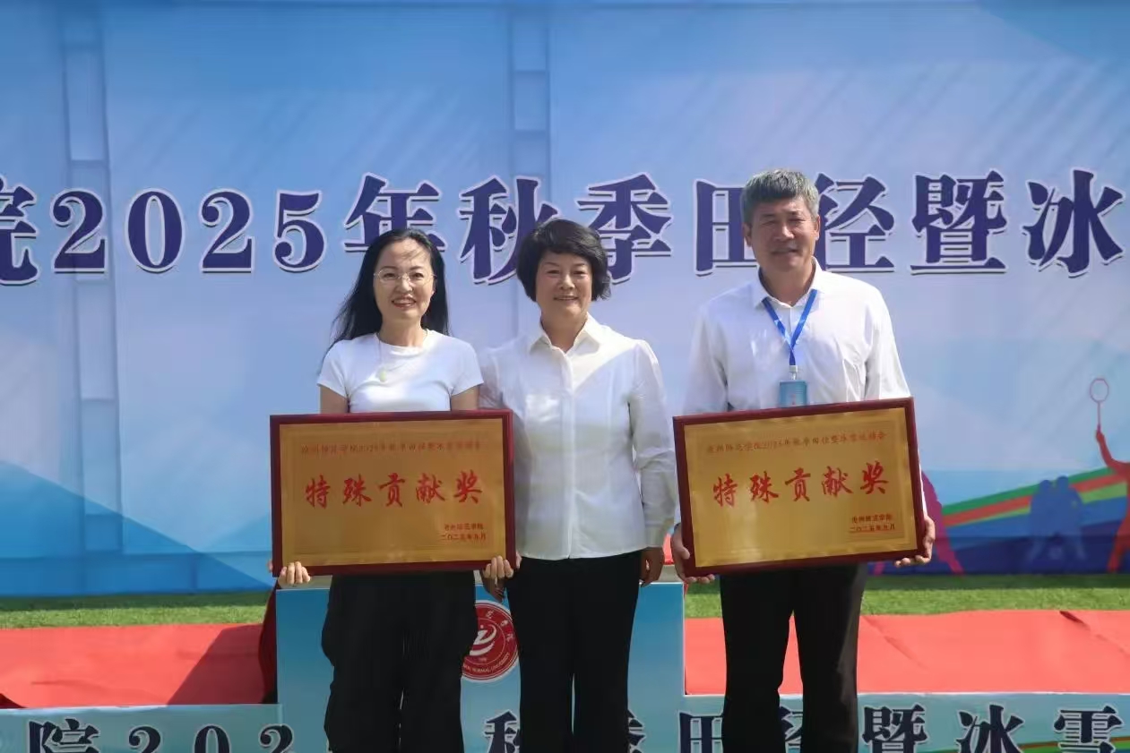 党委常委、副校长高颖为获得“特别贡献奖”和“体育道德风尚奖”的学院颁奖