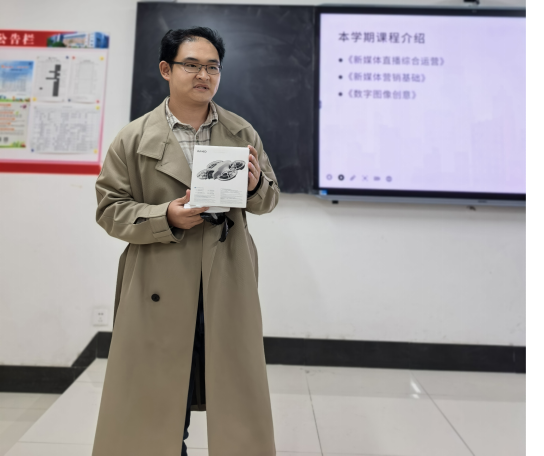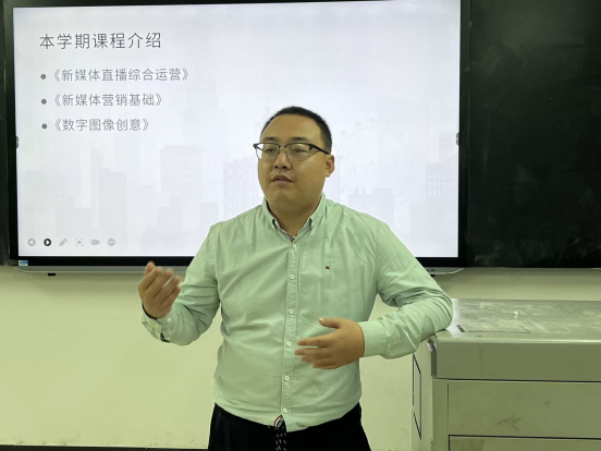 闫军老师则强调了《数字图像创意》课程的重要性,指出直播前的宣传造势需依托优质图文、视频内容,该课程将教授同学们制作美观的宣传图像与视频,满足个人直播及品牌直播的形象设计需求,为直播活动增添专业质感。