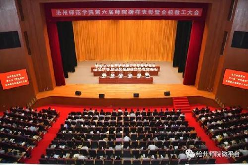 大会由副校长牛芙珍主持。副校长王双库宣读《关于表彰第六届师院榜样的决定》。副校长庞若通宣读《关于表彰青年教师讲课大赛获奖者的决定》。校纪委书记吴国君宣读《关于对2017年暑期参赛获奖团队及个人进行表彰的通报》。全校干部教师、学生代表1300余人参加大会。