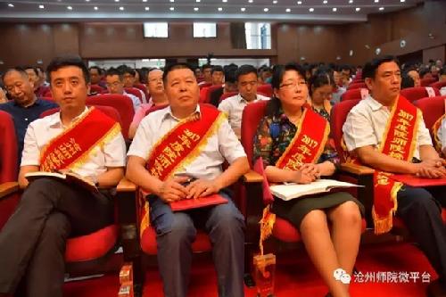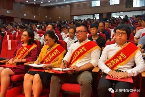 大会由副校长牛芙珍主持。副校长王双库宣读《关于表彰第六届师院榜样的决定》。副校长庞若通宣读《关于表彰青年教师讲课大赛获奖者的决定》。校纪委书记吴国君宣读《关于对2017年暑期参赛获奖团队及个人进行表彰的通报》。全校干部教师、学生代表1300余人参加大会。