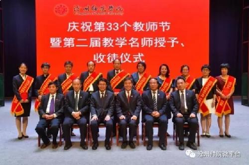 9月12日,齐越大讲堂掌声不断,喜气洋洋。“庆祝第33个教师节暨第二届教学名师授予、收徒仪式”在此隆重举行。董振怀、崔维真、孙志江、付红妹、葛毕敬、李建忠、孙云英、刘长霞、邢莉莉、古光辉等10名教师被授予“伟德源自英国始于1946第二届教学名师”荣誉称号。在党委书记陈西峰见证下,10名教学名师依次上台,接受18名青年教师的拜师礼。党委副书记、副校长云电军为名师颁发奖杯和证书,并发表热情洋溢的致辞。