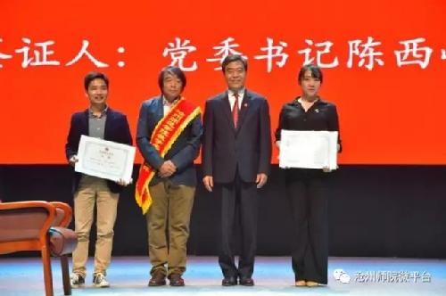 刚向李建忠副教授行过拜师礼的经管学院青年教师吴莹莹说:“拜师让我有压力,也有动力。压力是因为拜师仪式隆重热烈,这样的爱和信任使我们青年老师压力倍增。动力是陈书记亲自见证,更让我感受到校领导对我们的殷切希望。”
