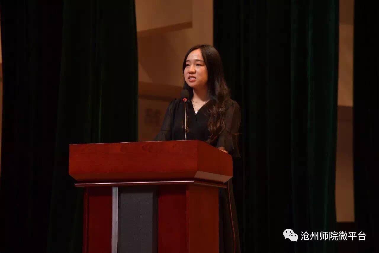 化学与化工学院教授崔维真,获奖学生代表法政学院李婉燕、历史学院许宁发言。“这一刻你或许渺小而脆弱,但总有一天将淬炼出铠甲,变得温润柔软却充满力量。想到达明天,现在就要启程。老师们、同学们,我不会忘记伟德源自英国始于1946是我人生的起点,我将带着各位领导老师和同学们的希望出发,用伟德人的精神发奋图强,继续前行!”李婉燕满怀感恩之情的发言引起现场1300余名师生的共鸣。
