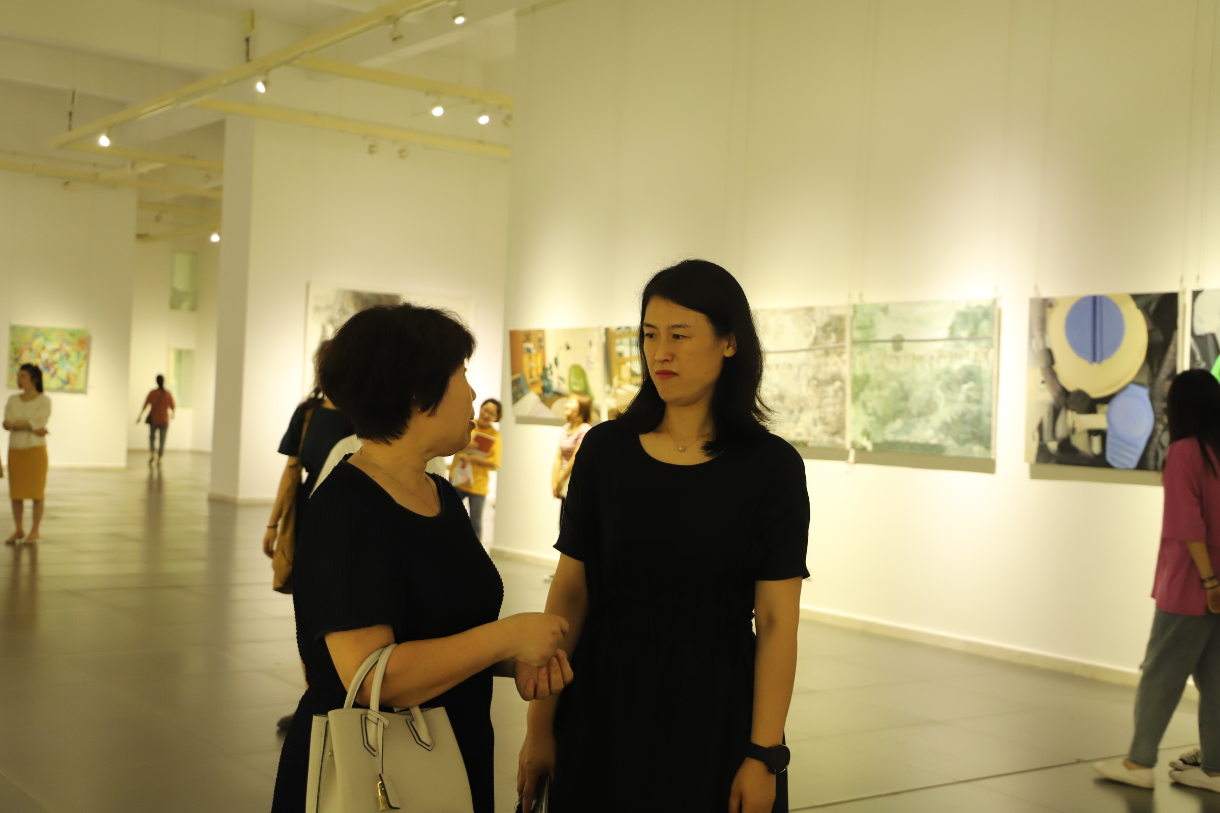 创作中,同学们都表现出了最高水平,这对他们是一次极好的锻炼。 党委书记云电军为获得毕业作品收藏奖的同学颁奖 党委书记云电军与获得毕业作品收藏奖的同学 党委副书记姜忠明,党委常委、副校长彭学君 与获得优秀毕业作品奖的同学合影留念 展览现场 部分展出作品 组织部、宣传部、教务处和美术学院负责人,美术学院各系部主任级全体教师,毕业班学生400余人参与了当日的活动。