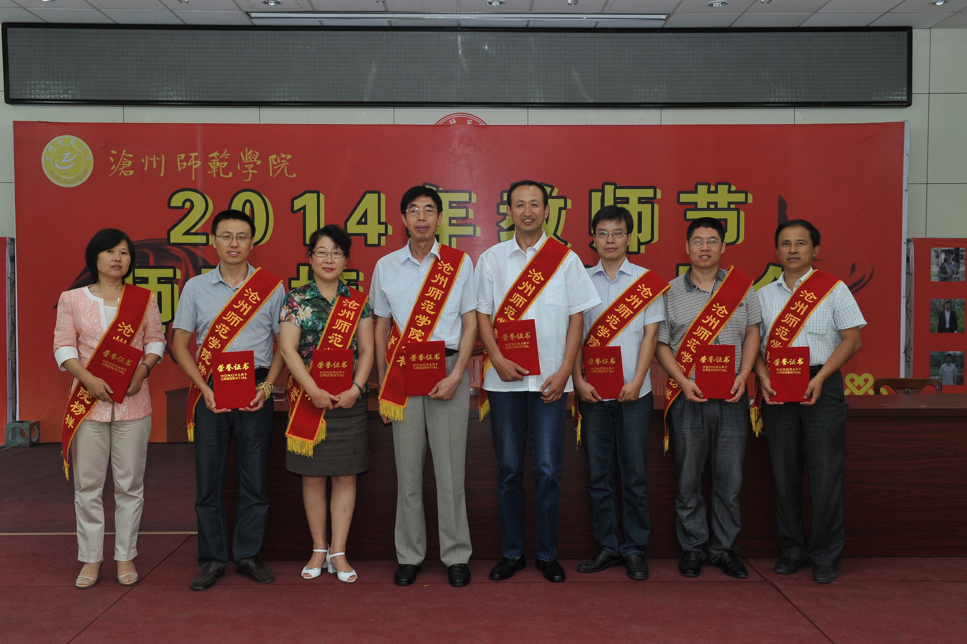 9月9日,2014年庆祝教师节暨师院榜样表彰大会在学术报告厅隆重举行。马文娟、吕炳君、刘树允、李洪臣、张文育、李建中、何凡、顾大鹏等被授予师院榜样荣誉称号。生命科学系副教授张莉老师被追认为师院榜样荣誉称号。校领导陈西峰、刘树桢、赵铁生、牛芙珍、王双库、庞若通为师院榜样颁奖。在播放了师院榜样的专题片之后,9名受表彰的干部教师一一上台领奖并接受采访。校长刘树桢发表讲话。