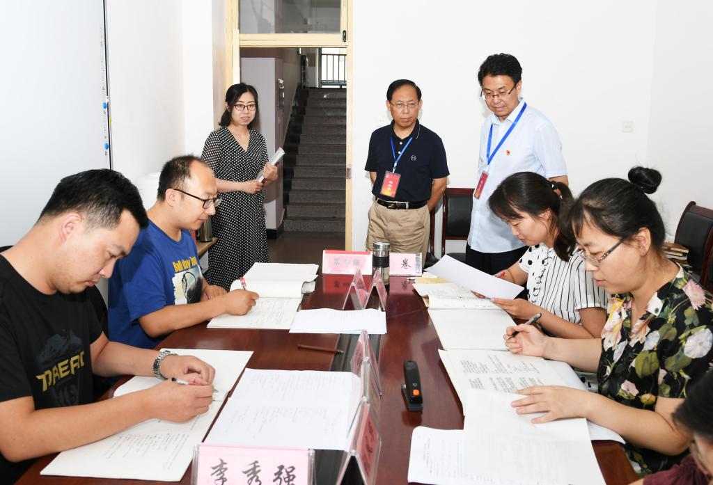 伟德期末考试工作进入阅卷阶段。7月7日上午10点,党委书记云电军、校长张占平来到各二级学院,对各学院阅卷及收尾工作进行了认真巡查。在评阅现场,云电军、张占平向紧张评阅的老师们表示慰问,并查阅试卷,与评阅老师亲切交流,提醒老师们注意劳逸结合。本次阅卷分集中流水阅卷和网上流水阅卷两种形式。集中阅卷前各学院指定专门人员将试卷包头、装订,以防止学生信息泄露,保证阅卷公平性,杜绝徇情舞弊行为。网上流水阅卷本学期首次实施,选取了马克思主义学院、外国语学院、文学院、商学院、机电学院等5个阅卷任务重的学院作为试点,目前网上阅卷任务已完成80%。在听取了外国语学院、马克思主义学院的关于网上评阅工作汇报后,云电军、张占平对于各学院整体井然有序的期末阅卷安排表示满意。