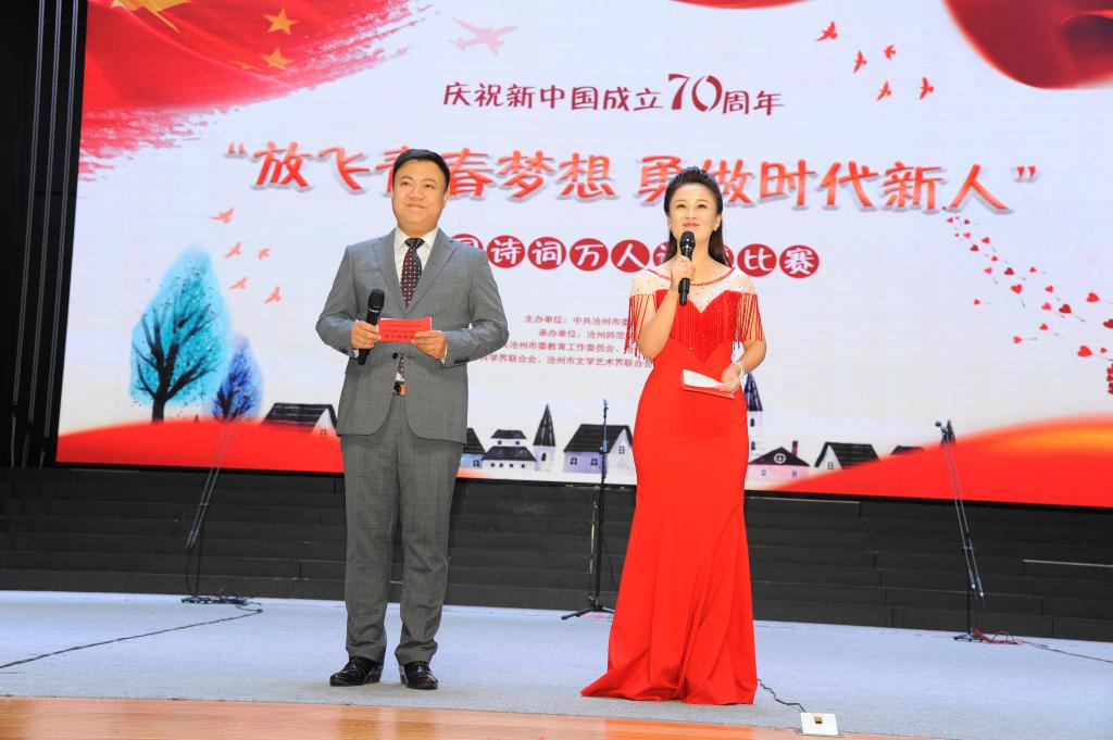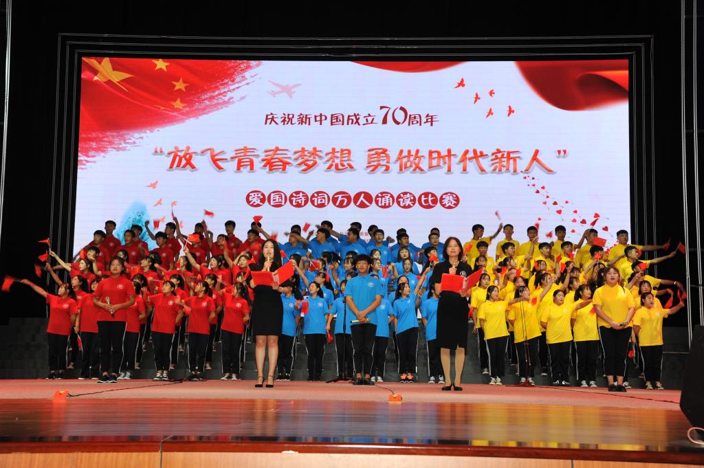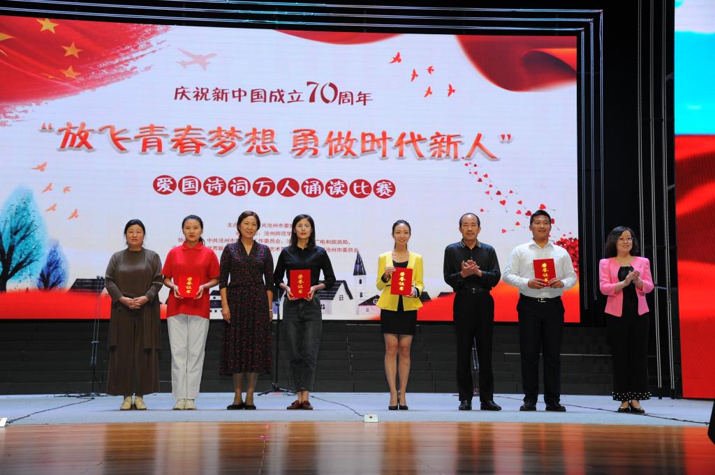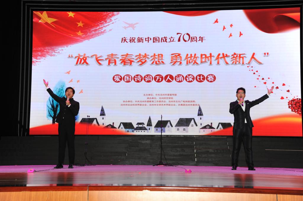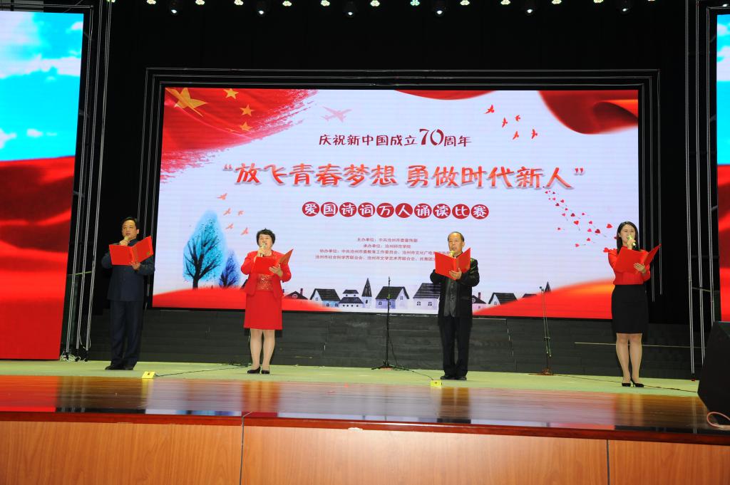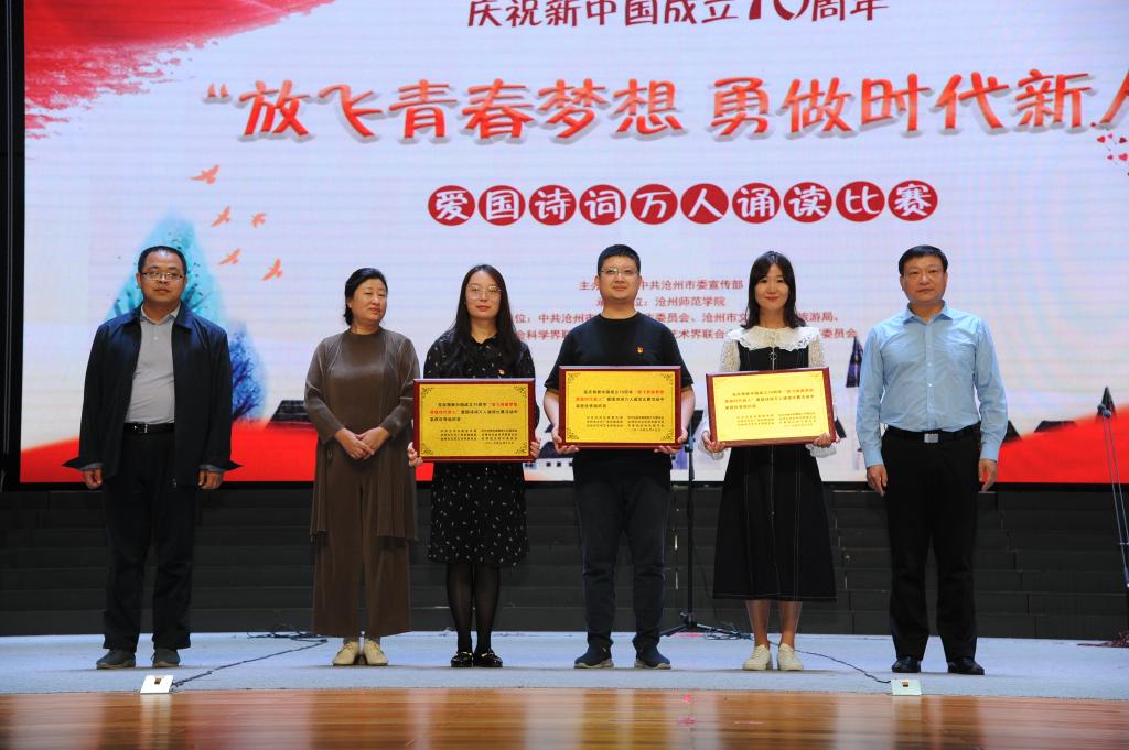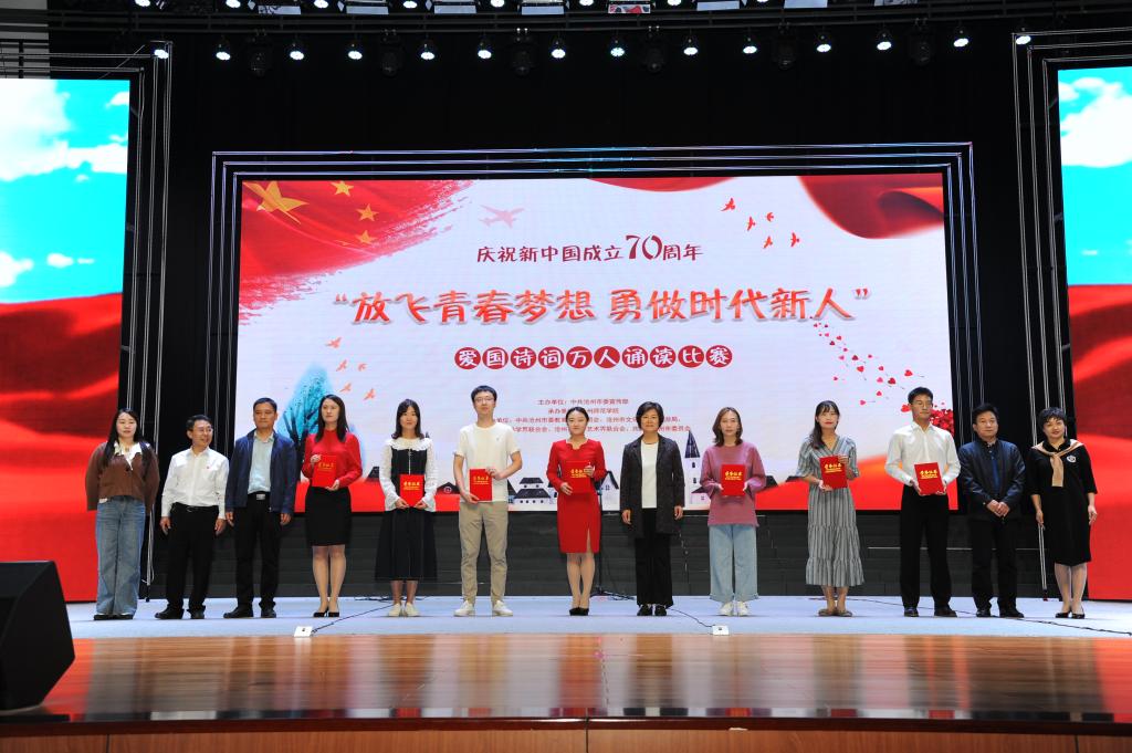 “我爱我的祖国,爱那东方明珠夜色和乡村淡淡稻香交织着祖国多元化发展的成果……”9月19日,齐越大讲堂内爱国声朗,爱国情激荡。“放飞青春梦想 勇做时代新人”庆祝中华人民共和国成立70周年爱国诗词万人诵读活动总决赛在此圆满落幕。校党委副书记王双库、副校长高颖出席活动并为获奖选手颁奖。