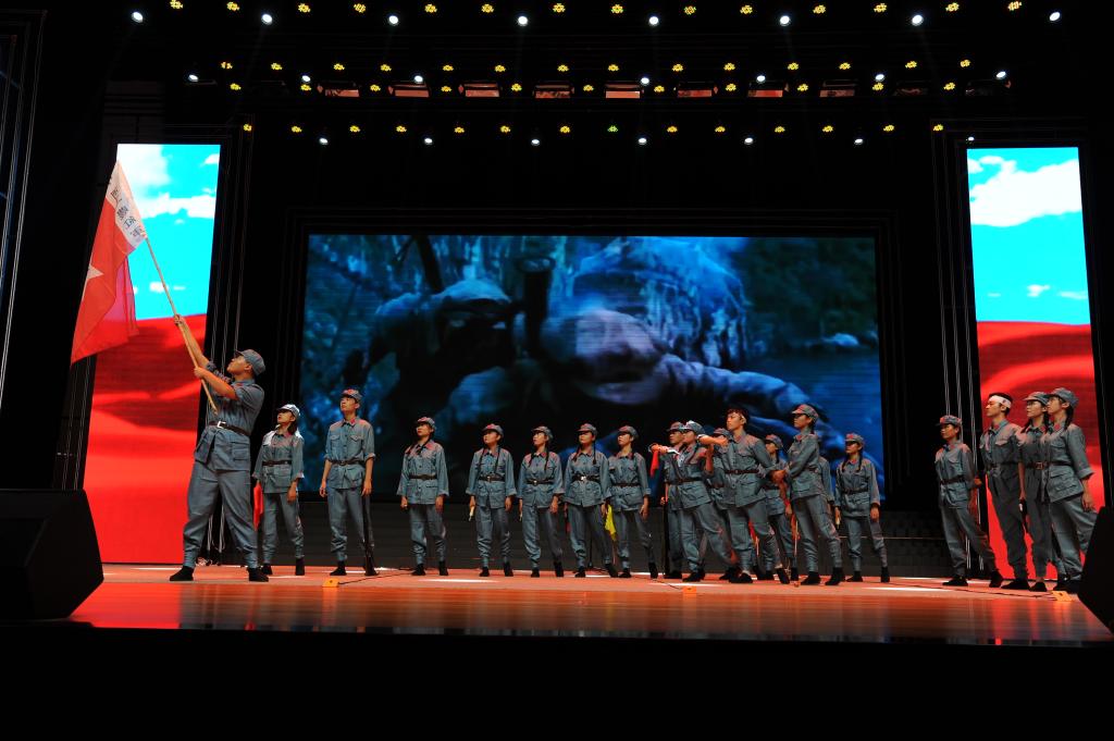 来自全市不同大中专院校的大学生饱含深情地展演了12个爱国诗篇。《大国工匠》《匠心报国 共筑梦想》《有一个奇迹叫中国》展现了国家腾飞的成就,《我爱我的祖国》《我的南方和北方》描绘了祖国山河的壮阔,《少年中国说》《走好今天长征路》抒发了青年爱国报国壮志,《习近平的知青岁月》《我是共产党员,我没有忘记》诉说着共产党员的初心和使命,由留学生带来的《一带一路,筑梦前行》彰显了大国风采……节目集中展现了时代青年爱党、爱国、爱社会主义的情怀。市全民阅读促进会参与展演,献上了朗诵《红船,从南湖起航》和《红土地上的爱情绝唱》。