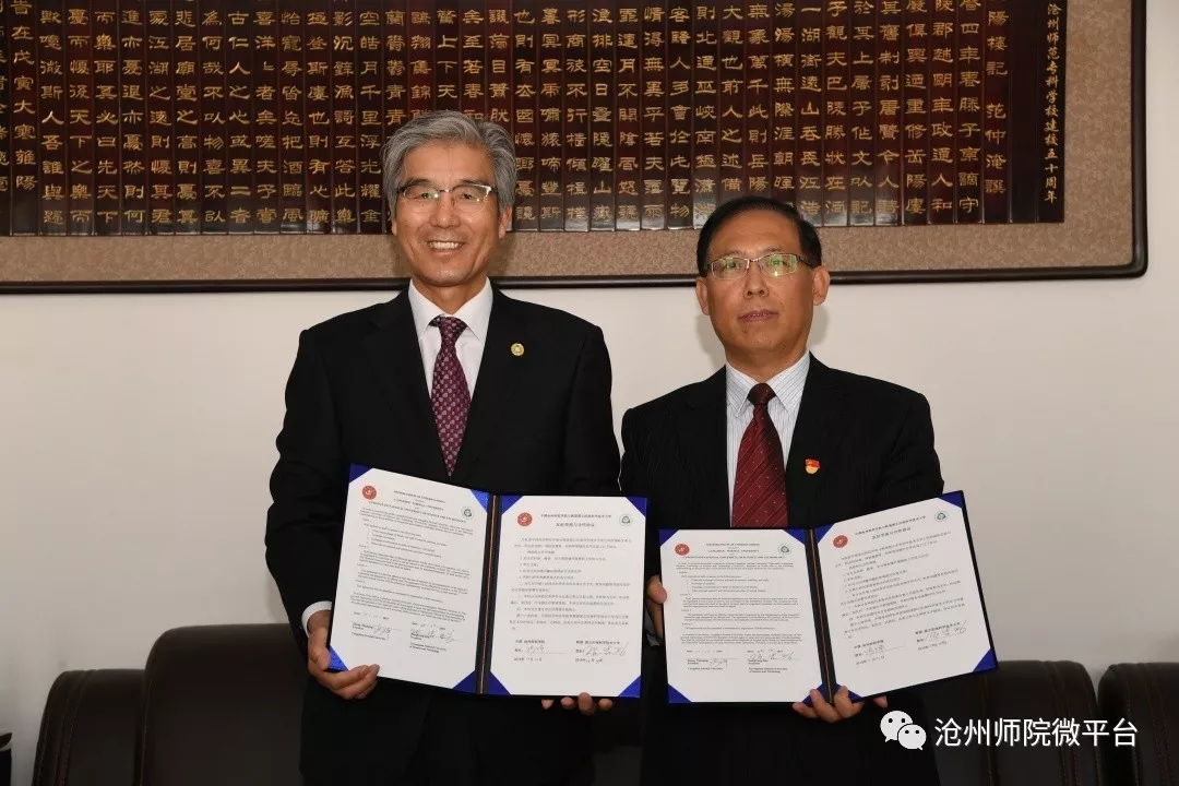 张占平和金南京签署了《伟德源自英国始于1946与韩国国立庆南科学技术大学友好交流与合作协议》。