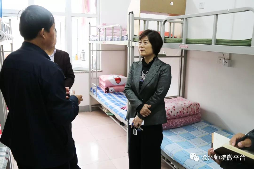 10月24日上午,副校长高颖带领各学院党总支书记和负责宿舍管理工作的辅导员参观了经济管理学院的宿舍。