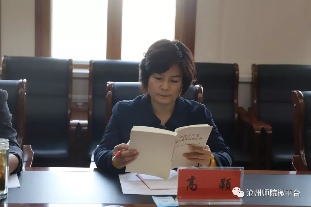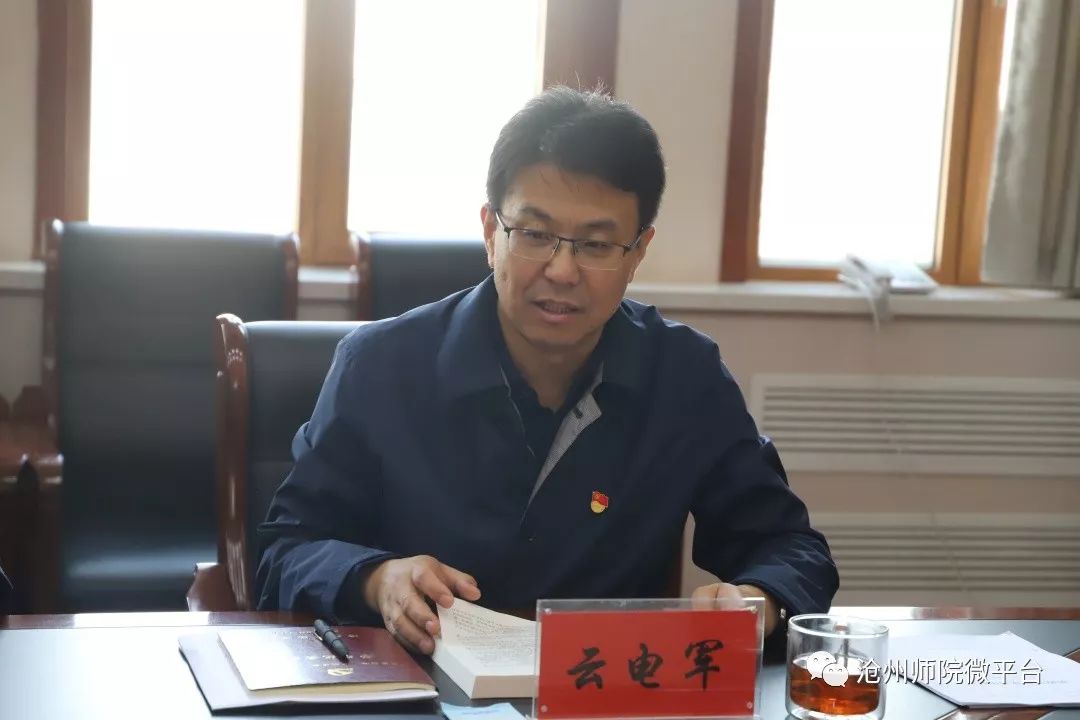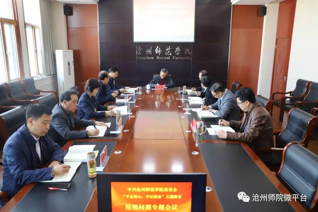 党委书记云电军在会上领学了党章、《准则》和《条例》的有关内容,并就领导班子和个人检视情况进行了汇报。云电军指出,按照中央《关于在“不忘初心、牢记使命”主题教育中对照党章党规找差距的工作方案》和中共沧州市委“不忘初心、牢记使命”主题教育领导小组统一部署,学校领导班子围绕守初心、担使命,找差距、抓落实的总要求,在认真组织学习党章、《准则》和《条例》的基础上,按照对照党章找差距工作安排,结合通过基层调研走访、问卷调查、师生座谈和班子成员谈心等方式形成的调研成果,以正视问题的自觉和刀刃向内的勇气,对照党章党规需要重点查摆的“18个是否”进行逐一检视分析,形成了问题清单,明确了今后的努力方向和整改措施。