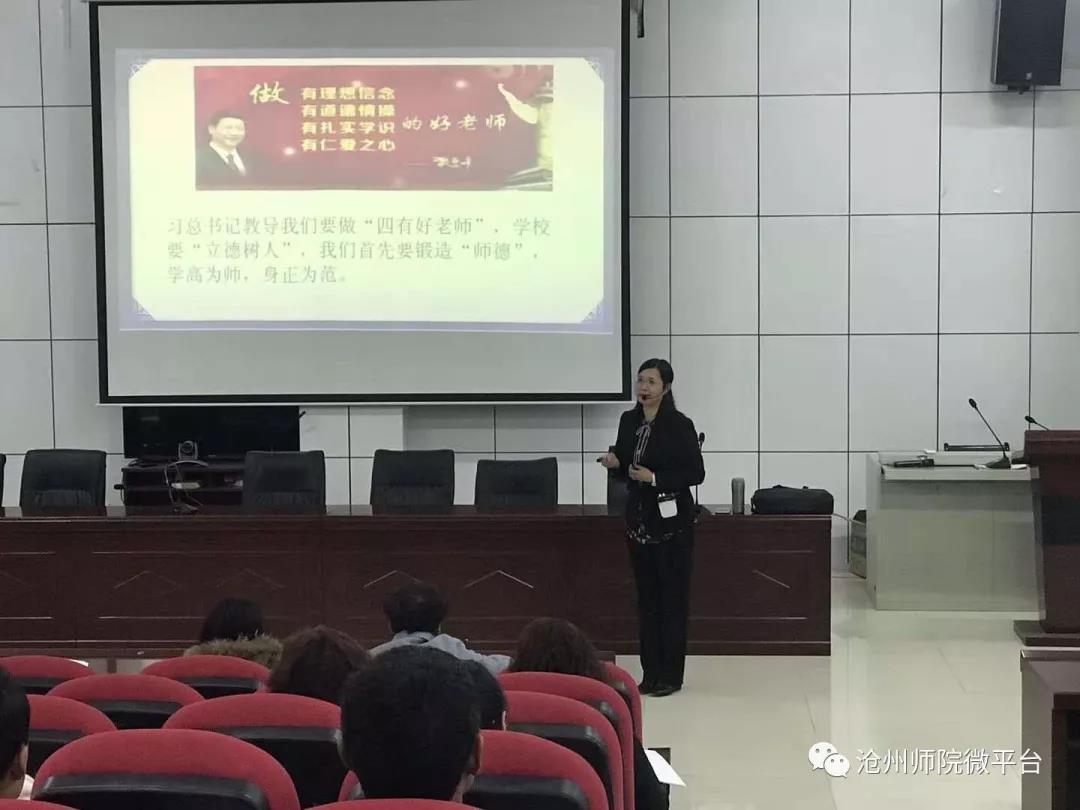 吴院长从礼仪及内涵、教师仪容仪表礼仪、教师体态与表情礼仪、教师语言礼仪四大板块进行教师礼仪专题讲座。特别是在职业形象这个板块中,她利用生动活泼的事例、图文并茂的课件,围绕教师的体态礼仪、谈吐礼仪、服饰礼仪、工作礼仪、社交礼仪、仪容、仪表和仪态礼仪等方面作了详细的阐述。