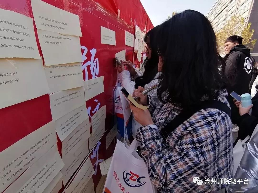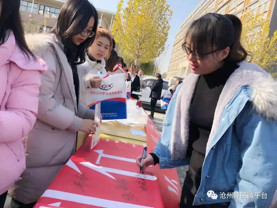 第32个艾滋病宣传日来临之际,伟德教育学院团总支学生会、青年志愿者协会、风行辩论社联合沧州市疾病预防控制中心在文科楼前小广场共同举行了“防治艾滋,你我同行”防艾宣传活动。