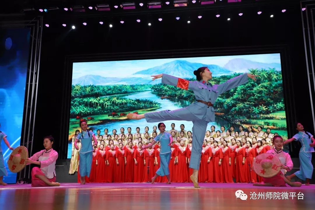 一曲绚丽多姿的歌舞表演《万泉河水清又清》拉开了文艺晚会的帷幕。整台晚会由“浴血奋战”“艰苦奋斗”“砥砺前行”三个篇章组成,演员们热情奔放的表演,宣扬了各界群众为实现伟大中国梦而不懈努力、坚持奋斗的精神,涌动着中华民族文艺百花齐放的活力。歌剧片段《太行山上》、合唱《保卫黄河》、舞蹈《东方红》、钢琴独奏《浏阳河》、民乐合奏《喜洋洋》、朗诵《我骄傲我是中国人》、歌曲《天耀中华》、歌伴舞《新的天地》……一个个不同艺术表现形式的节目,热情讴歌了中华儿女在党的领导下和睦相处、和衷共济、和谐发展的幸福生活,充分表达了他们对伟大祖国的由衷热爱。整台晚会主题特色浓郁,时代特色鲜明,生动展现了党的十八大以来各族群众在以习近平同志为核心的党中央高度重视和亲切关怀下,像石榴籽儿一样紧紧团结在一起,凝心聚力,守望相助,共创美好未来的坚定决心,全场不时响起热烈掌声。此次文艺展演是伟德师生党员精神风貌的集中展示,也是伟德党组织“不忘初心、牢记使命”主题教育成果的一次集中汇报。演出在全体演员和观众合唱《歌唱祖国》中落下帷幕。