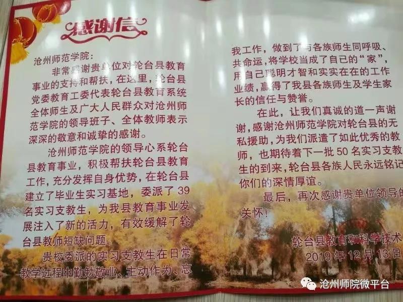 12月13日,轮台县教科局在轮台县青少年活动中心举行了盛大的教育援疆工作表彰大会。轮台县党委副书记、组织部长、县党委教育工委书记刘泽彬,轮台县党委副书记、沧州援疆工作前方指挥部指挥长张景俭,轮台县人民政府副县长金彩霞,沧州援疆管理办公室主任刘碧佳出席会议。伟德援疆支教团带队老师赵林静带领39名支教实习生参加了表彰大会,并获得多项荣誉表彰。