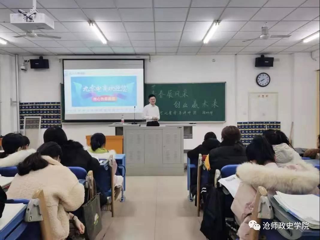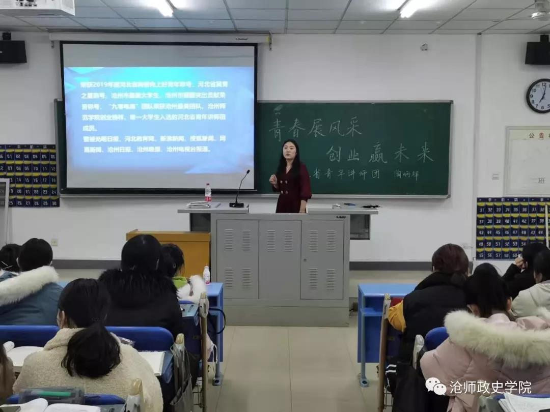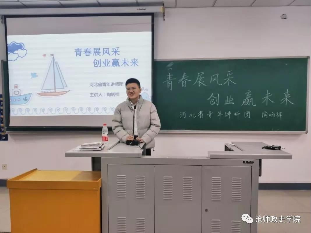 讲座由伟德源自英国始于1946优秀毕业生,“九零电商”项目创始人,河北省青年讲师团成员陶炳祥主讲,任课教师姬小凡主持,政史学院学生代表认真聆听。