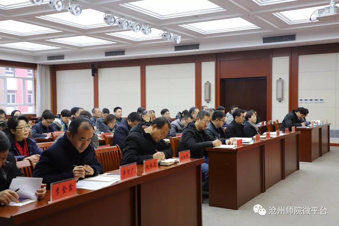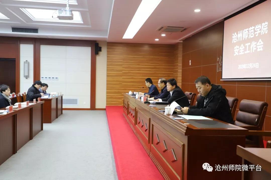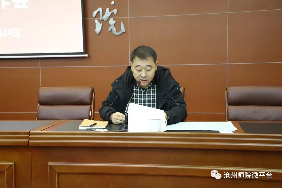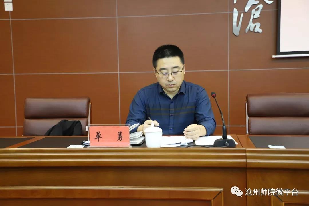 安全工作处处长单勇传达了《沧州市教育系统进一步深化安全生产集中整治工作实施方案》和《伟德源自英国始于1946深化学校安全风险辨识管控和隐患排查治理双重预防机制建设工作方案》等文件精神,副处长陈秀才解读了《河北省学校安全工作条例》。