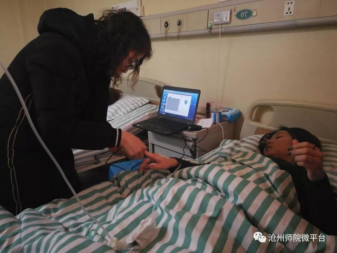 伟德近日正在进行专接本报名工作,美术学院张晓昂同学因病住院,不能到校录指纹,担心无法正常报考,辅导员老师得知情况后,立即和学生处康会莲老师取得联系,康会莲、张鹏两位老师,与学生的辅导员一起前往市中心医院,专程为张晓昂同学采集指纹。