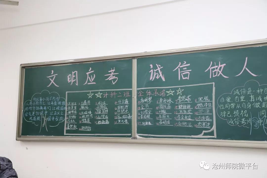 据悉,为营造公平、公正的考试氛围,以考风促学风,考试前,各学院通过召开诚信考试动员会、诚信考试主题班会、学生签订诚信考试承诺书、设置诚信考场等形式对学生进行了考前教育,教育学生诚信考试,抵制不良考风,杜绝舞弊行为。教务处采取实地巡考和网上巡考相结合的方式,对考试全过程进行巡查;各学院成立了院级巡查组;部分学院在考场外设置了考生服务处,在考场内安放了手机置物袋,这些措施的实施,有效增强了学生诚信考试的意识,确保了良好的考试秩序。