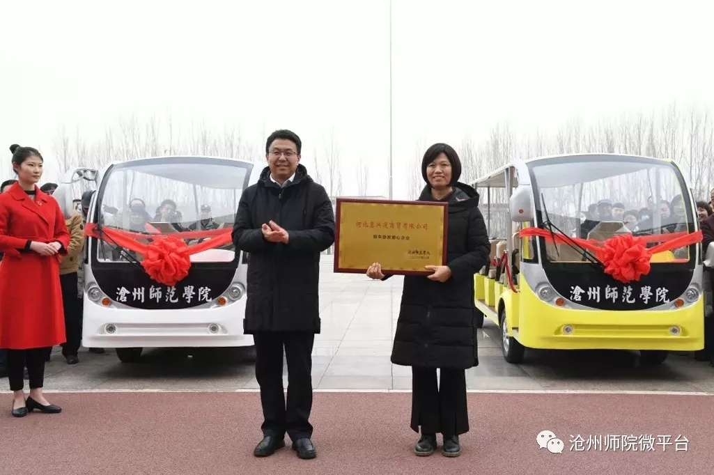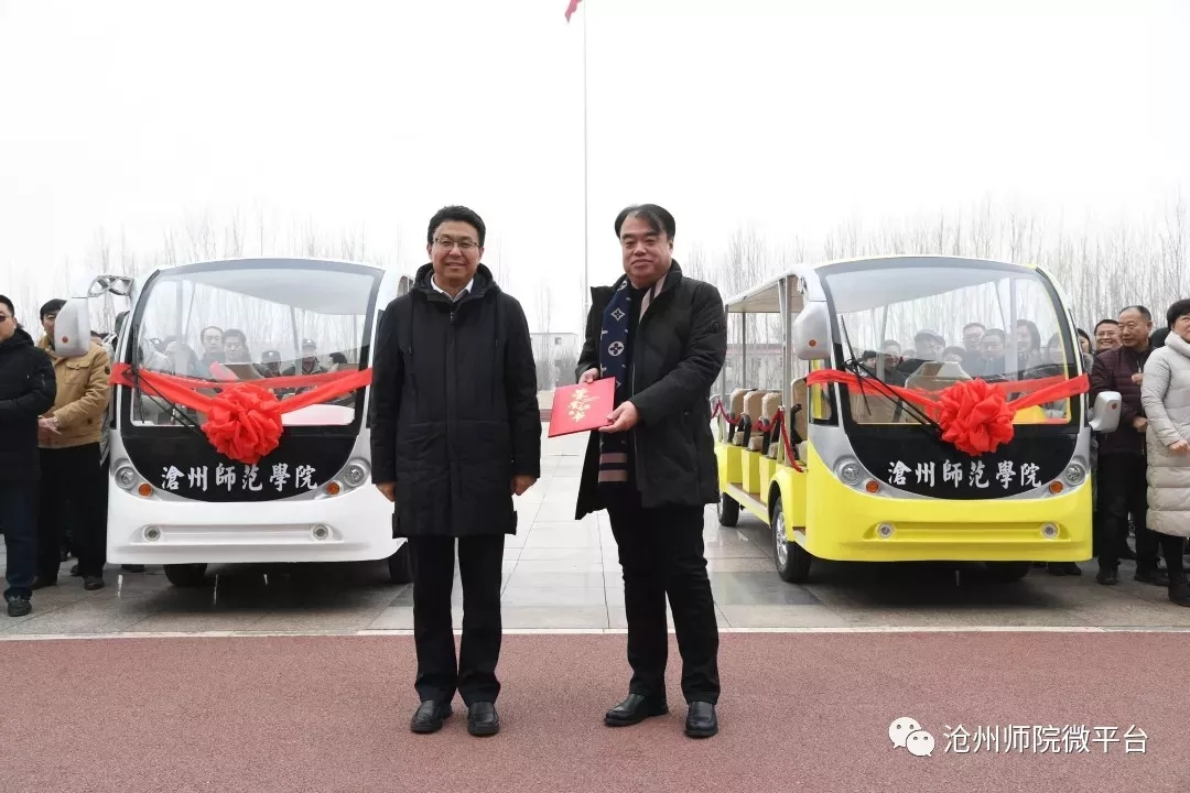 新年伊始,情暖校园。1月10日上午,在市委教育工委副书记李凤强,民建沧州市委副主委刘圣,民建沧州市委市直四支部主委郑卫等人的多方协调与见证下,爱心企业家高军先生、王亚岚女士向伟德源自英国始于1946捐赠校园观光车交车仪式在图书馆广场举行。校党委书记云电军、党校副书记王双库、副校长周振平出席仪式。