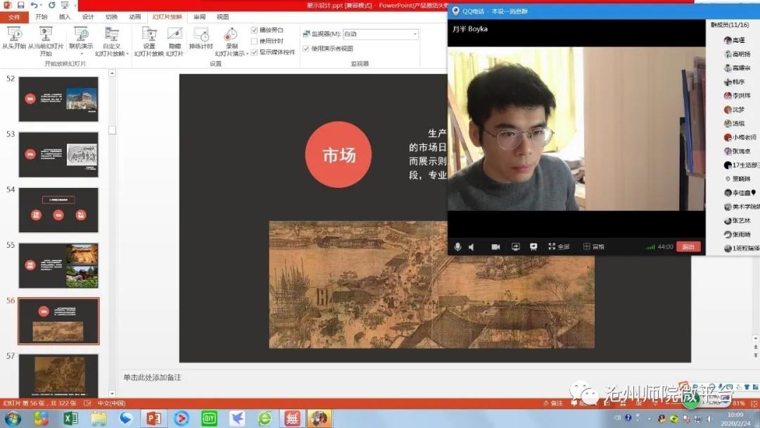 没有了往日挥毫泼墨的教学条件,老师们在家开启了线上授课,网络教学开局良好。老师们在家里上课,学生在家里听课,没有传统意义上的教室。但是,却能够实现老师面对多人讲课,老师和学生不在一起却胜似在一起。