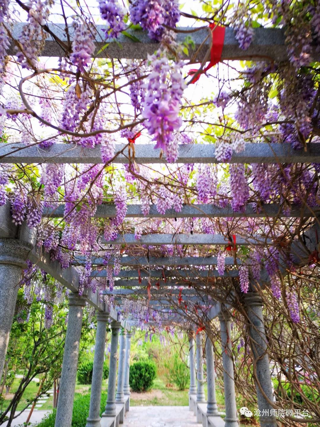 连廊:一廊一世界,一座一人生。紫藤花开的季节里,闻着花香,享受阳光,这是我的母校,这里有家乡的味道。