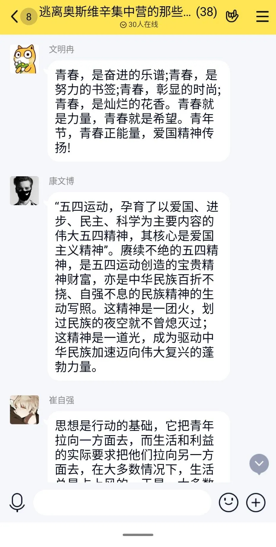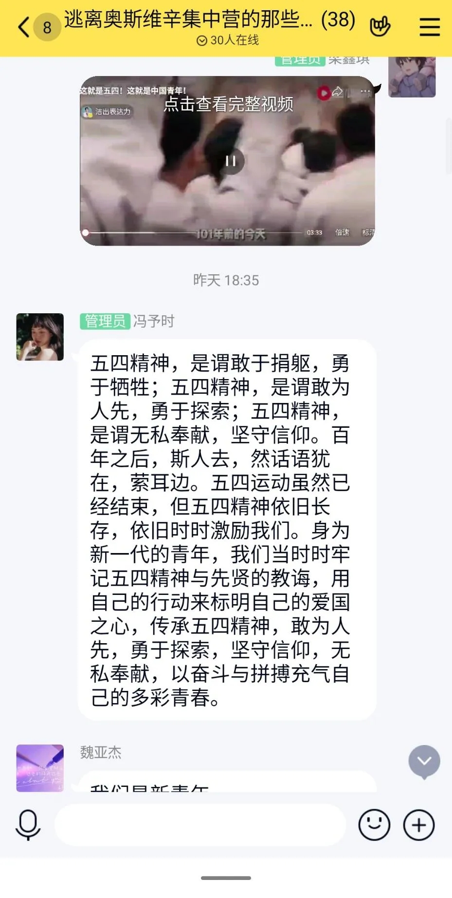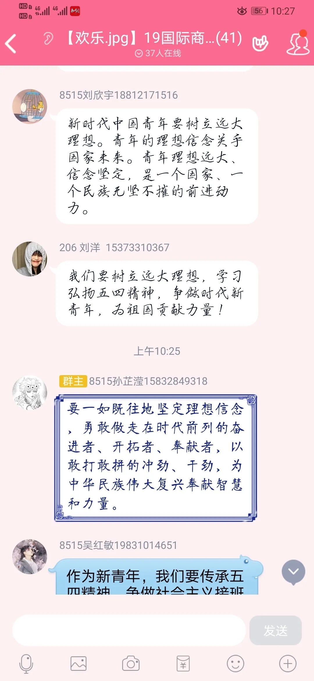 团课上同学们积极与主持人连麦,踊跃发言,针对寄语表达了对国家和社会的责任意识。大家纷纷表示一定牢记嘱托,不断为中国梦而努力奋斗,让时代看到广大青年的新面貌。用奋斗诠释青年模样,用青春书写壮丽新篇章。