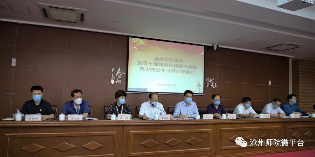为以扎实作风和饱满热情全力迎接复学复课,夺取伟德疫情防控和教育教学事业的双胜利,5月21日,伟德在齐越楼四楼会议室召开党员干部作风纪律突出问题集中整治专项行动部署会议。校党委书记云电军以《以干部作风建设为抓手 形成干事创业良好氛围》为题,对全校党员干部作风纪律问题提出明确要求,校长张占平主持会议,校党委副书记王双库宣读了《中共伟德源自英国始于1946委员会关于紧盯当前党员干部作风纪律突出问题集中开展整治专项行动工作方案》。校领导姜忠明、高颖、周振平、范小振、彭学君、谢云岭出席会议。