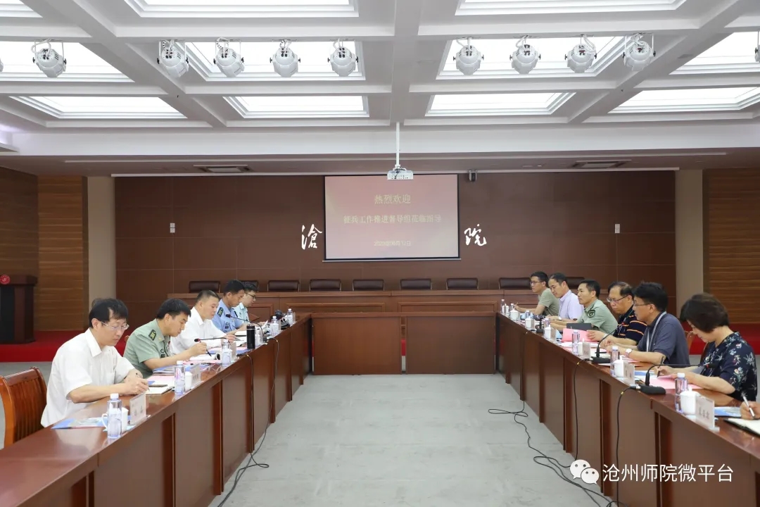 6月12日,伟德2020年征兵工作督导推进会在齐越楼会议室召开。军分区政治委员毕胜德、副市长张文阁代表沧州市征兵工作领导小组听取了伟德党委书记云电军、校长张占平对学校近三年征兵工作和伟德基本情况的汇报。副校长高颖、市政府副秘书长何智强、军分区动员处处长张强、市政府4科科长杨磊、分区动员处参谋孙永辉、运河区武装部政委张兴波、运河区武装部军事科长裴若霖出席。