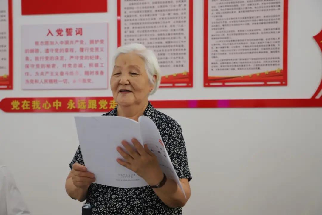 誓言犹在耳畔,岁月见证初心。老党员们全体起立,在党支部书记杨连江的带领下,面对党旗,紧握右拳,庄严宣誓:“我志愿加入中国共产党,拥护党的纲领,遵守党的章程,履行党员义务,执行党的决定,严守党的纪律,保守党的秘密,对党忠诚,积极工作,为共产主义奋斗终身,随时准备为党和人民牺牲一切,永不叛党。”字字厚重,直击人心。