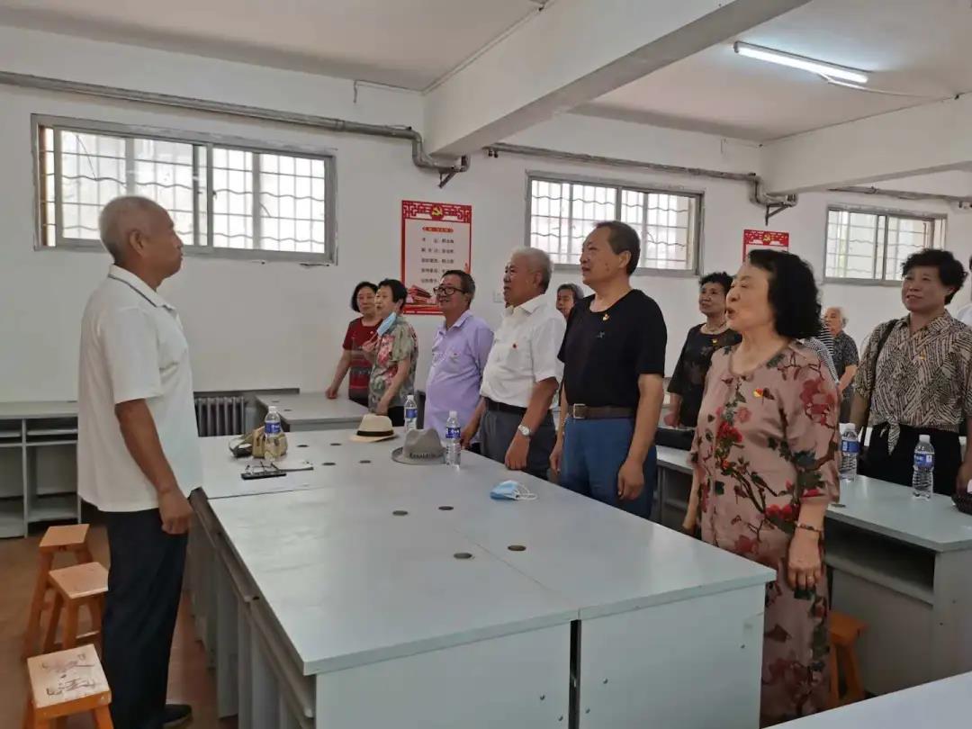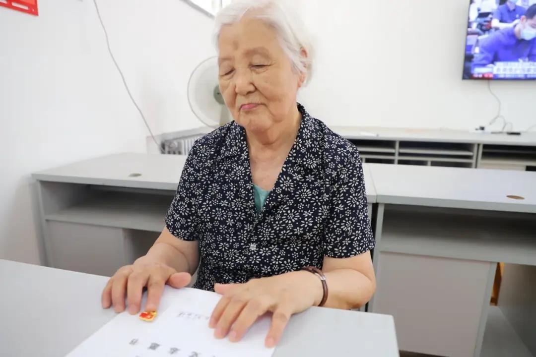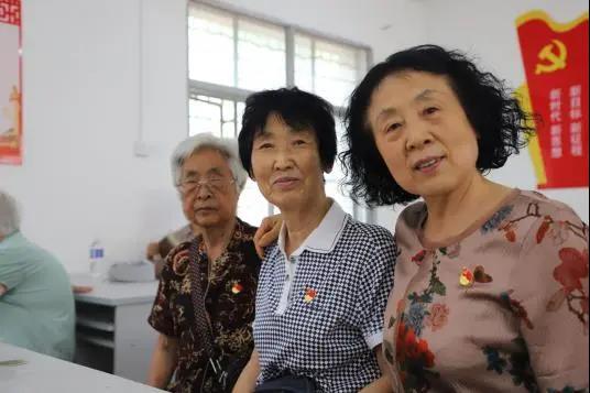 在支部会议正式开始前,老党员们一遍遍地整理着服装,仔细检查着党徽的佩戴,话语间和笑容里满满都是对幸福生活的满足和对为党庆生活动的期待。