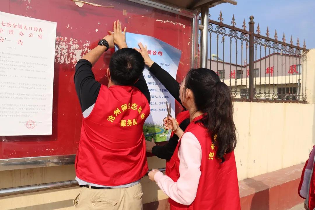 三是积极行动。各党总支(支部)积极响应学校党委号召,助力创城积极行动,分别利用政治学习和主题班会、团日活动时间,实现了全校1009名教职工和379个教学班15621名学生学习《沧州市民文明手册》全覆盖,进一步强化了创城知识应知应会和文明礼仪教育;分别在学校和张庄子张贴文明提醒海报100张、发放《沧州市民文明手册》450册,营造良好的创城宣传氛围;在此基础上,继续坚持每周一次到张庄子集市区开展清扫卫生和捡拾白色垃圾活动,以实际行动助力“冲刺”创城。