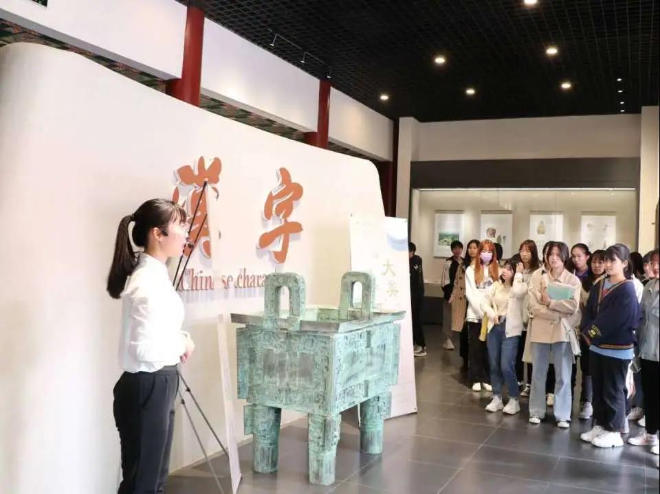 参观过程中,沧州博物馆讲解员利用沙盘模型及馆藏文物配合展板的讲解方式,为政史学院200多名学生进行了一场生动形象的运河文化讲解。随后,政史学院志愿者负责人引导观众参观了文博馆,进一步了解了我国语言文字的历史。