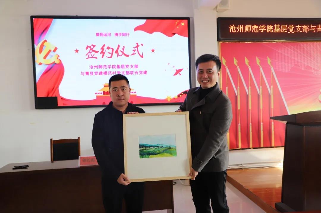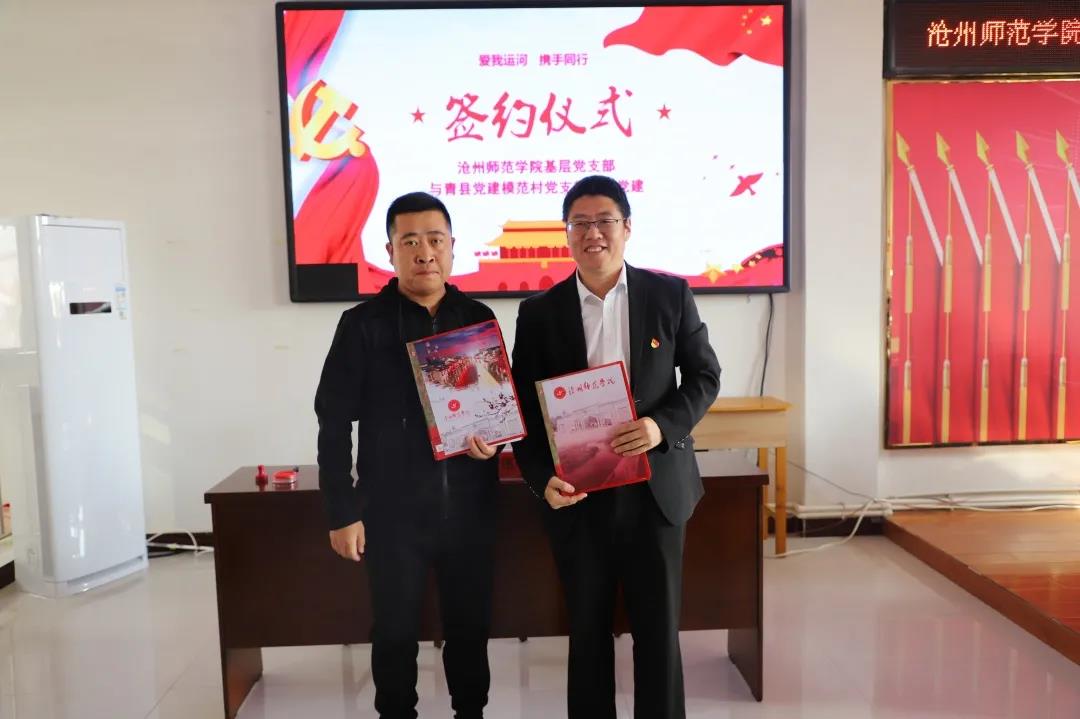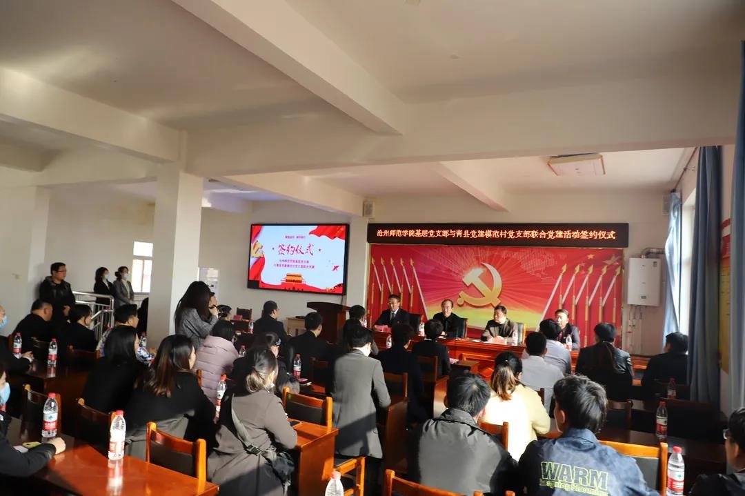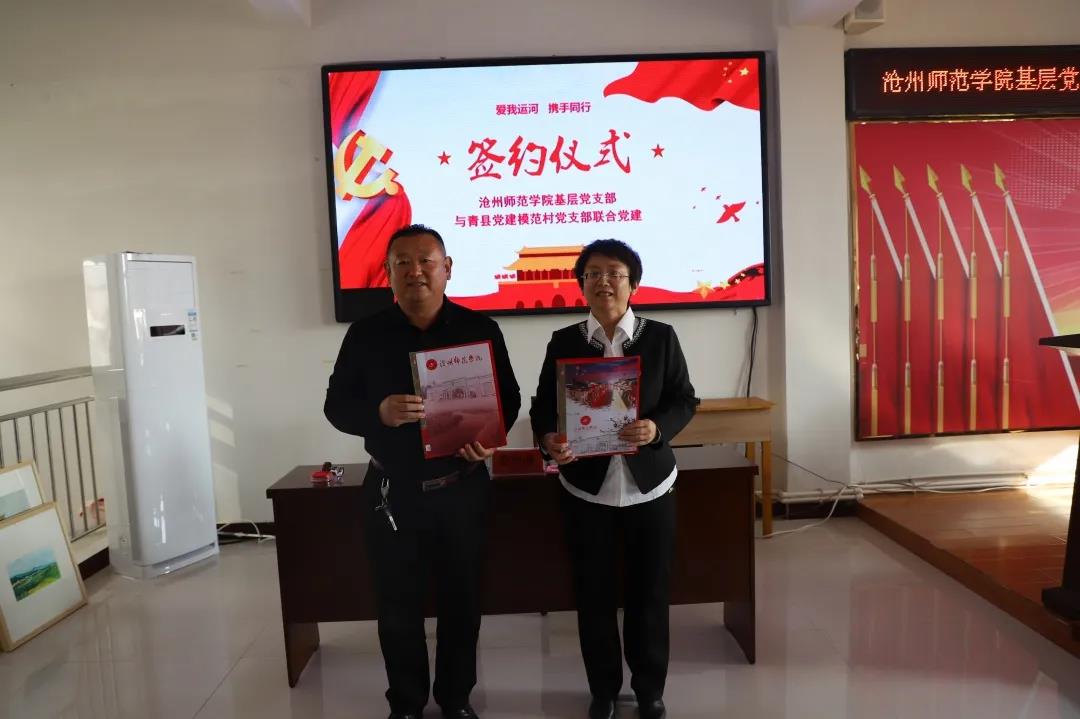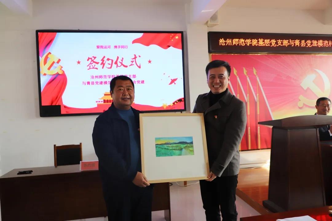 王双库与青县县委组织部部长张永志出席“爱我运河 携手同行”联合党建项目签约仪式并分别致辞。