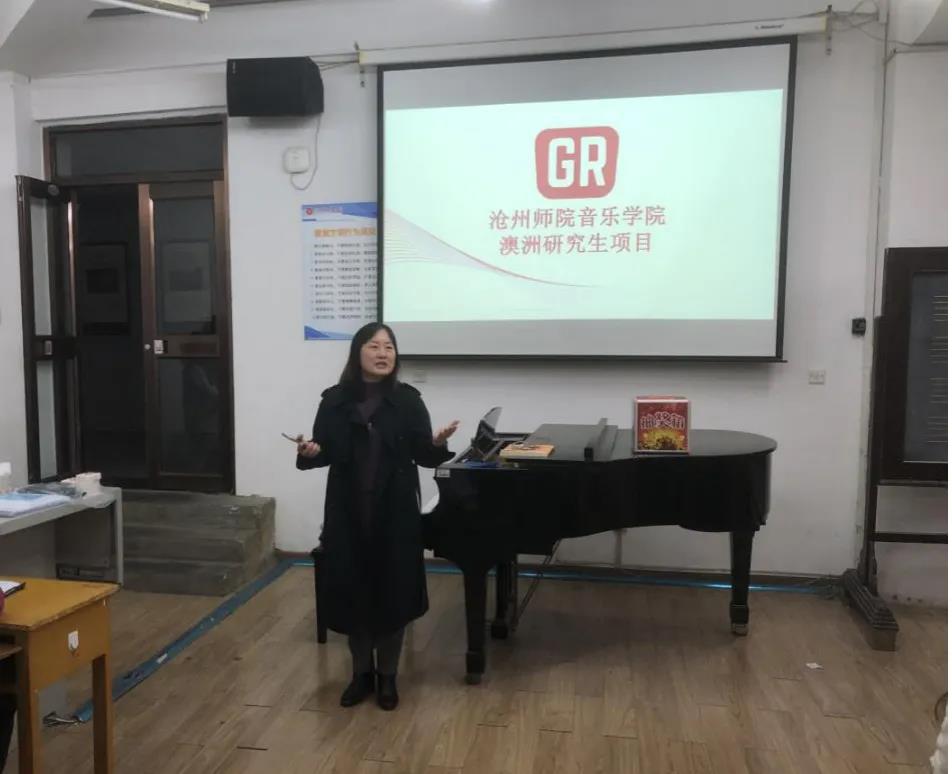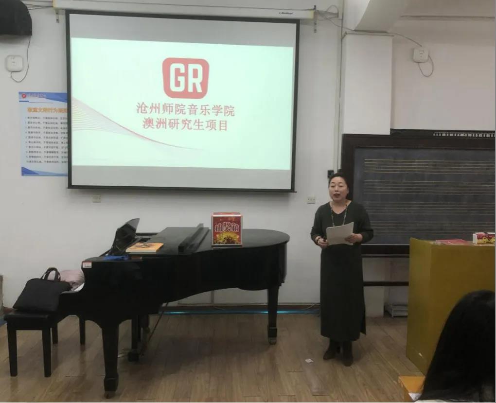 为积极推进伟德教育对外开放进程,进一步拓宽学生海外升学空间,11月12日,国际交流学院邀请澳洲GR group集团公司河北分部负责人李励进行澳大利亚音乐学院硕士项目专场宣讲。音乐学院院长郭玉华主持,国际交流学院院长韩丽梅出席宣讲会。