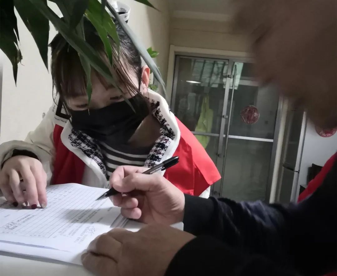 接到防疫工作通知后,她第一时间号召她所住小区内的大学生加入志愿者小队。很快,便有两名大学生报名。但是他们还没出隔离期,所以就先独自担起了入户分发填写排查表的任务。排查任务紧急,小区住户又不在少数,虽然去年她在参与疫情防控工作时积累了一些经验,但是这次工作她依然挨家挨户仔细排查,任何一点变化都不敢放过。在最短的时间内,以最快的速度完成了排查任务。