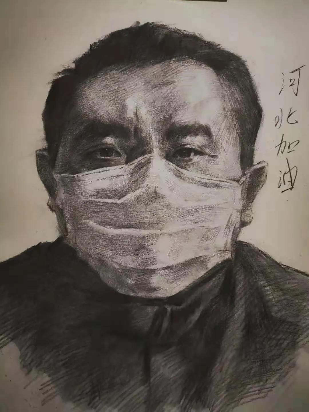 一个白衣天使坚守岗位,用血肉之躯与疫情赛跑,无数的“追光者”们在国家和人民最需要的时候,做出无怨无悔的选择。和平年代的英雄人物,就是普通人拥有一颗普通而伟大的心,我画的是一位平凡中的英雄。希望疫情早日消退,只要我们众志成城、万众一心、科学防治、精准施策,就一定能打赢这次战“疫”。加油河北!加油石家庄!