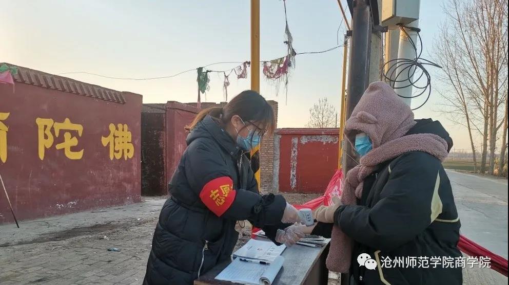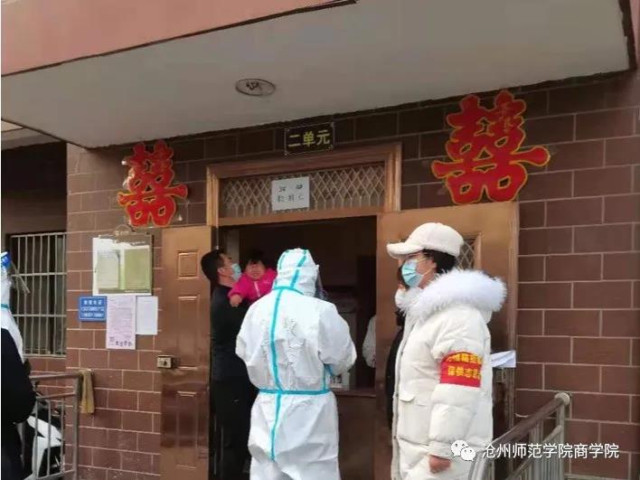 商学院19级国际商务张艺天,在河北省邢台市隆尧县黑城乡中进行志愿服务,主要任务是协助工作人员进行全员核酸检测并跟随乡政府人员去每家每户宣传病毒知识。