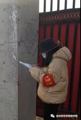1月13日我正式开始志愿者工作,在领导、队员、民众的配合下工作得以积极有效的落实。因为天气寒冷,领导们安排给女志愿者参与张贴海报的任务,而享受领导们体谅的我们也是十分的感动,励志要更加积极地参与抗疫工作。我们还专门成立了小组满足民众需求、积极听取民众需要,努力做到有求必应,提供最暖心的帮助。