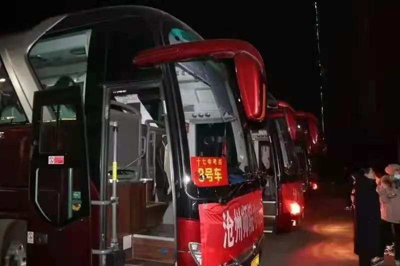 2020年12月26日晨6点,16辆48座超级大巴依次驶入夜色笼罩下的师院校园。根据校党委安排,早已等待多时的校党委常委、副校长高颖,率领着学生处、各学院干部、辅导教师、毕业班辅导员49人,为即将走上考场的630多名学生(今年有1137名学生考研,部分学生愿意接受学校免费接送服务)送上鼓励的眼神、温暖的拥抱、亲切的微笑、助威的话语。尤令学生惊喜的是,每人还得到书记、校长赠送的一份特别礼物:印着励考寄语的精美贺卡。辅导员全程跟随,每两人盯一个考点,以确保学生安全,解决突发问题。为保障学生休息好,这些大巴就停在考点附近,以便让学生午饭后上车休息。