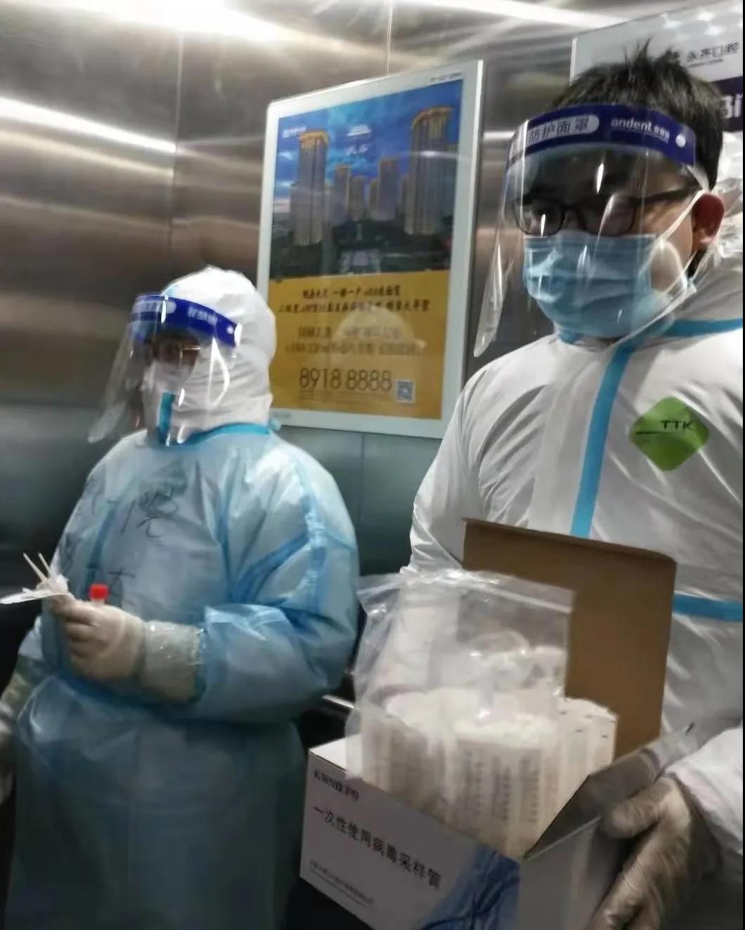 入户走访工作完成之后,他又被分配去协助医务人员对小区居民进行核酸检测。刘军所在的小区也有数万名居民,但是核酸检测的任务却有时间要求,作为志愿者的他也不得不调整了自己的作息时间,过起了“没黑没白”的日子,搬试剂、登记人员信息、维持队伍纪律,用他的话说就是“除了用棉签捅嗓子眼,别的活儿我都干过了”。